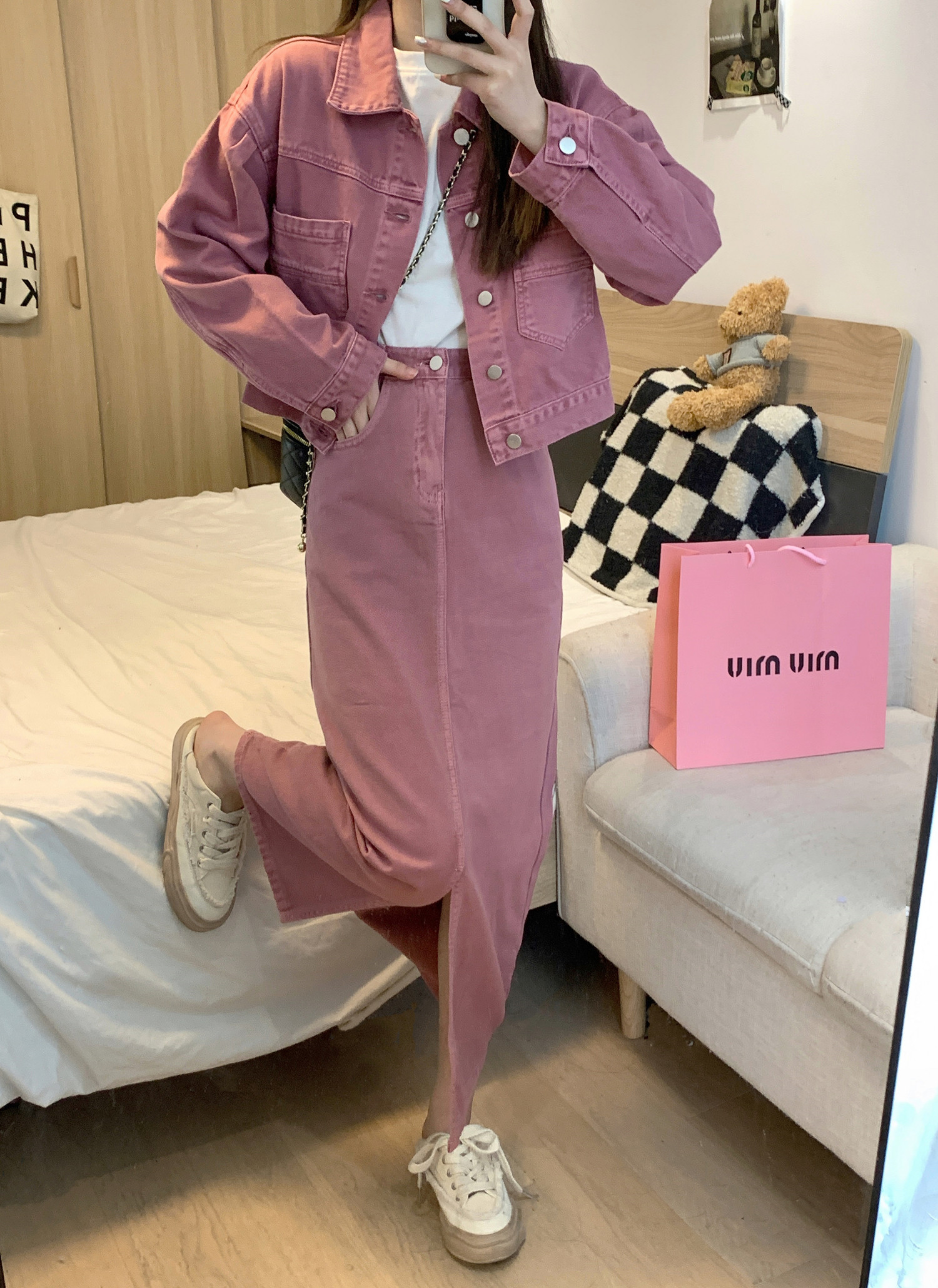 | Цвет: | Розовая куртка, Розовая юбка, Глова Ускин, Гвоздичная фиолетовая юбка |