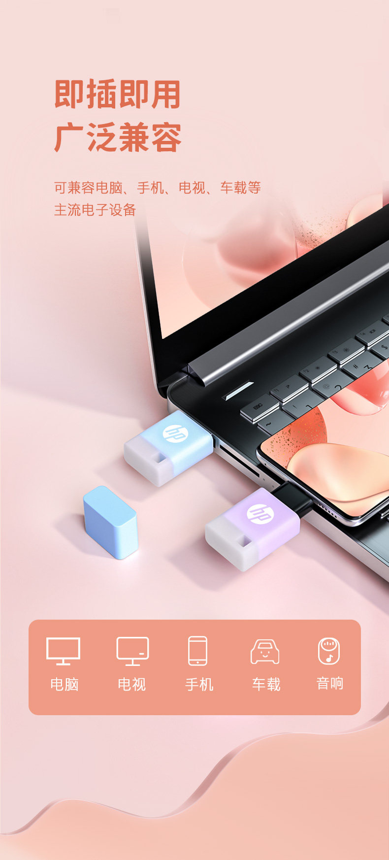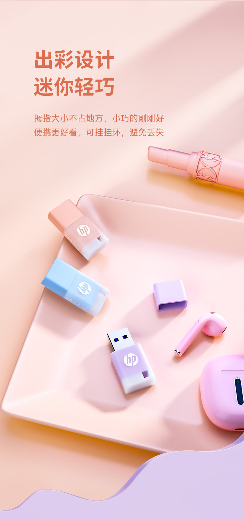 HP, маленький милый свежий USB-флеш-накопитель