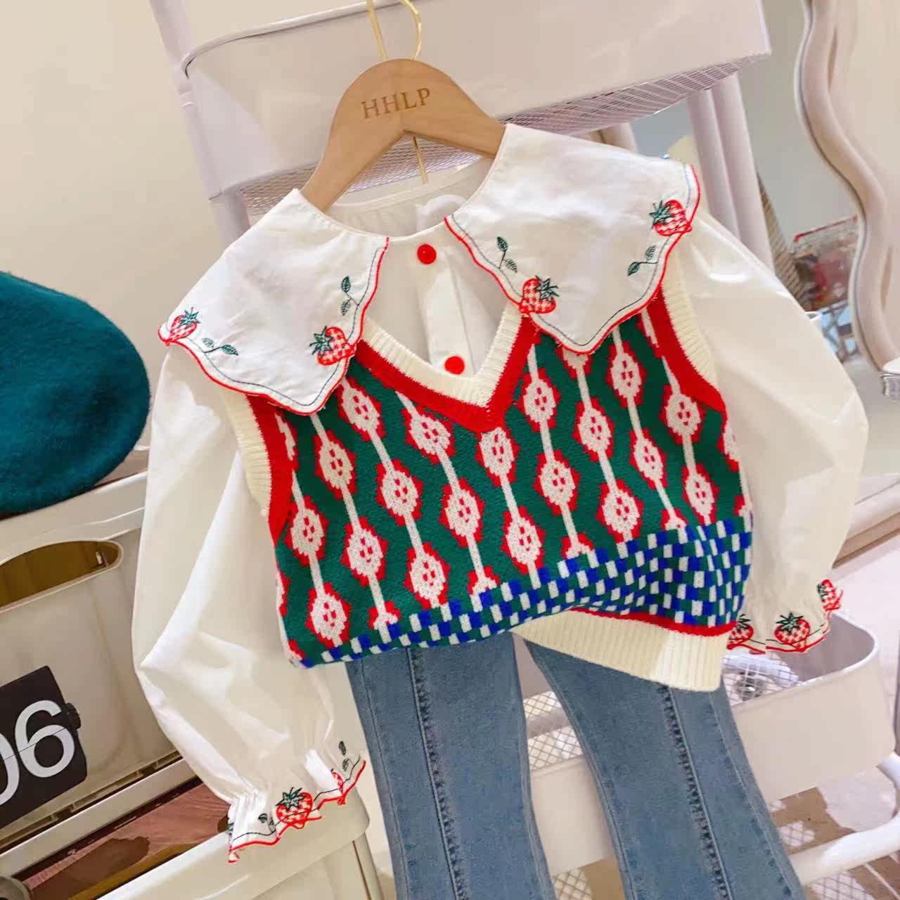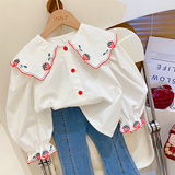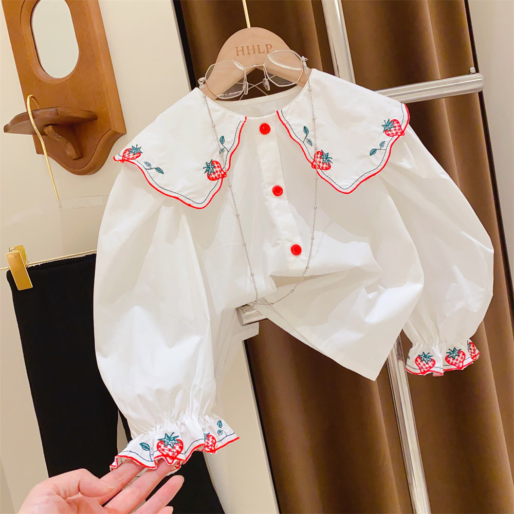 Клубника, мегафон, универсальная весенняя рубашка, с вышивкой, в западном стиле