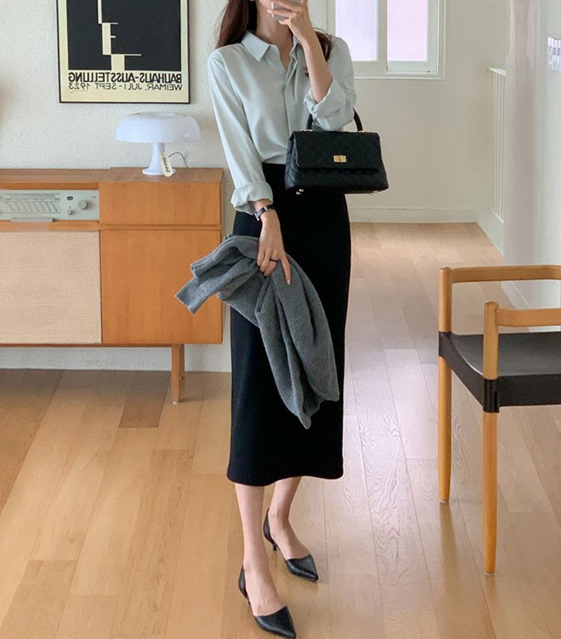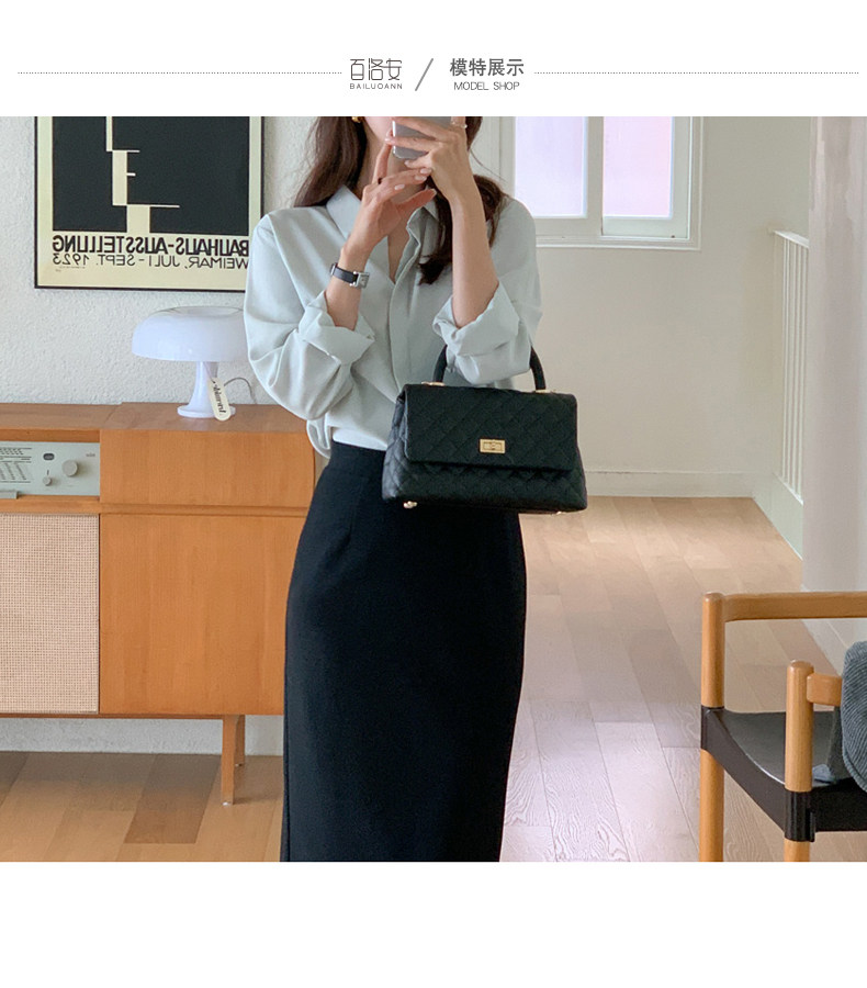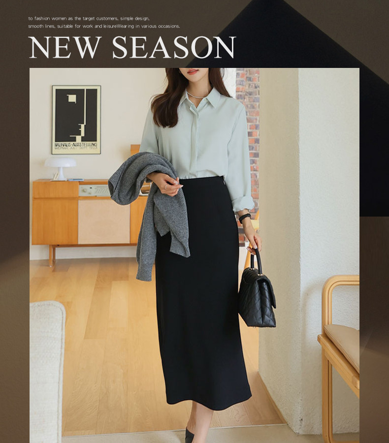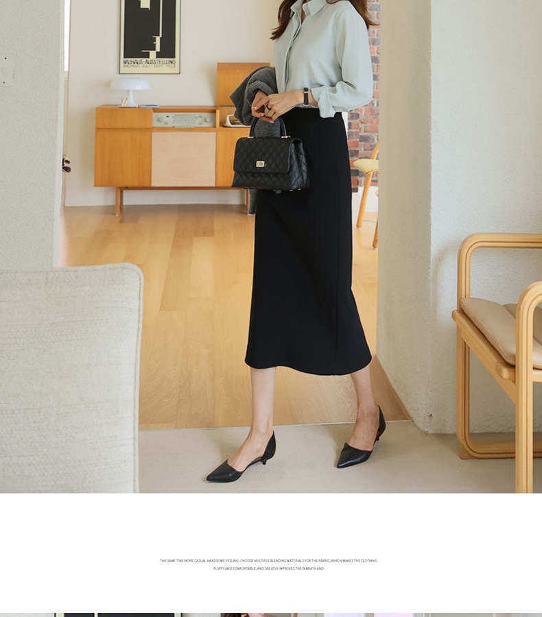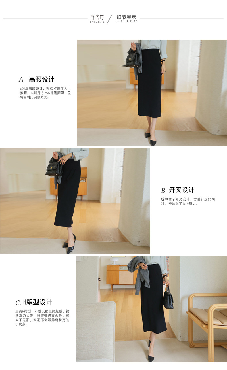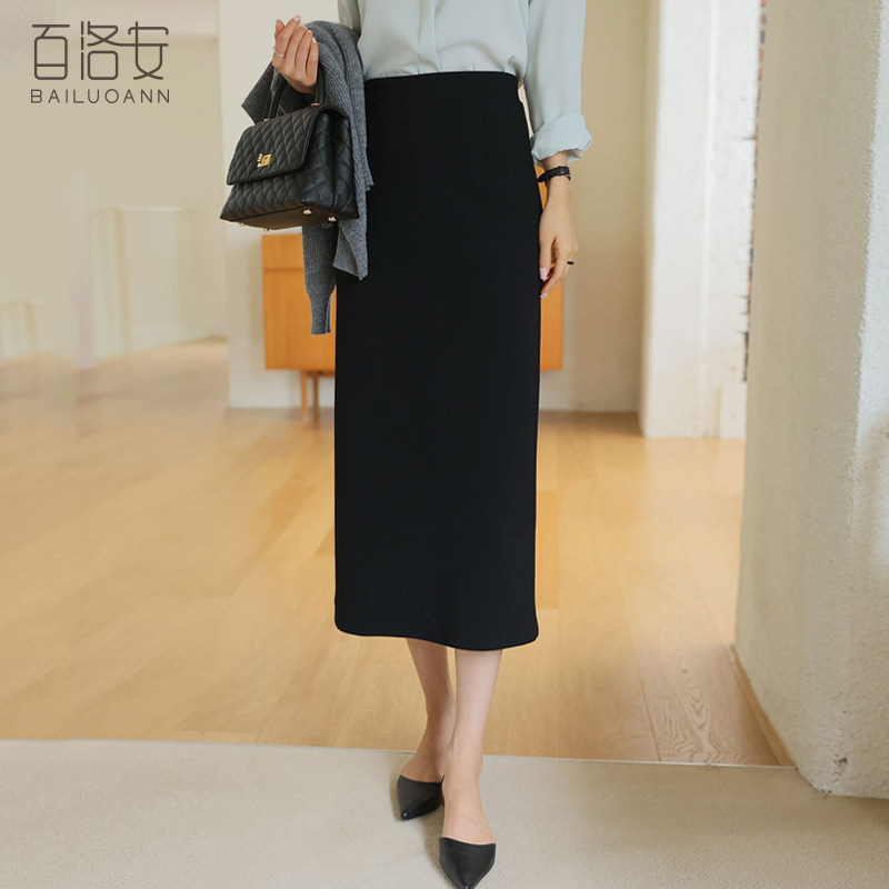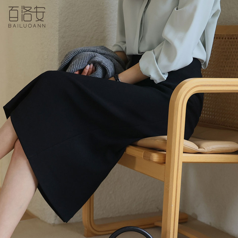 百洛安 Длинная осенняя длинная юбка, с акцентом на бедрах, свободный прямой крой, длина миди