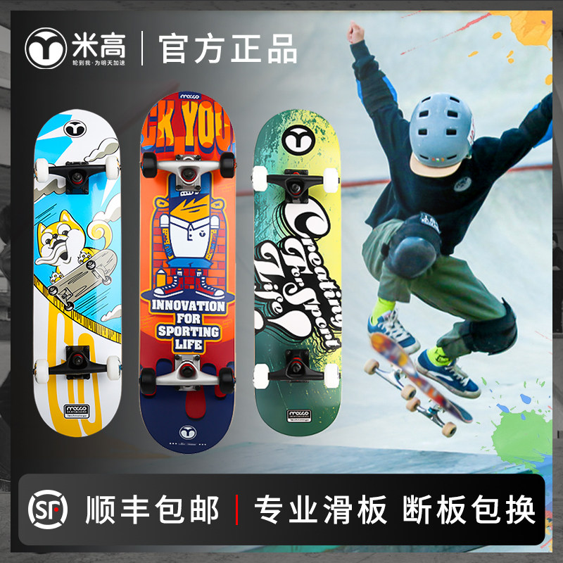 米高 Детский скейтборд с двумя изогнутыми концами для взрослых на четырех колесах, подходит для начинающих, подходит для подростков