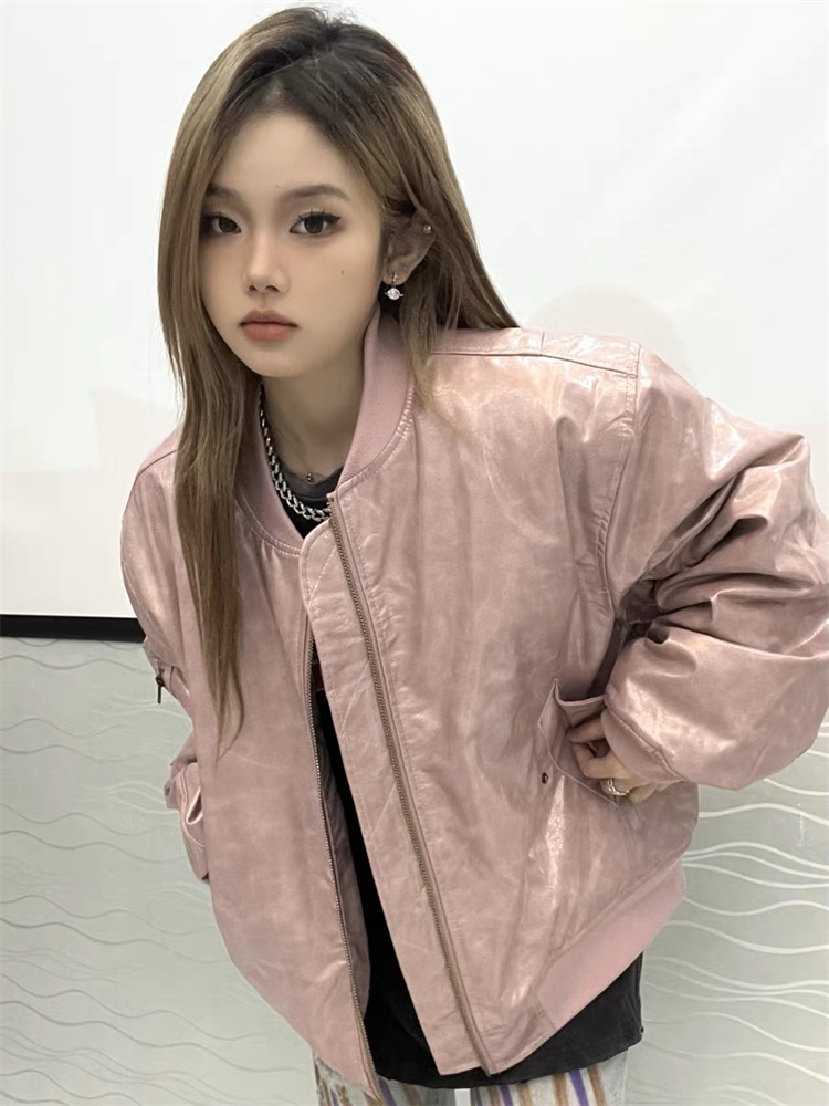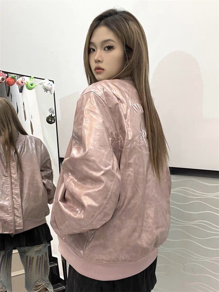 Ретро полиуретановая осенняя куртка подходит для мужчин и женщин, бейсбольная форма, в американском стиле, с вышивкой, оверсайз