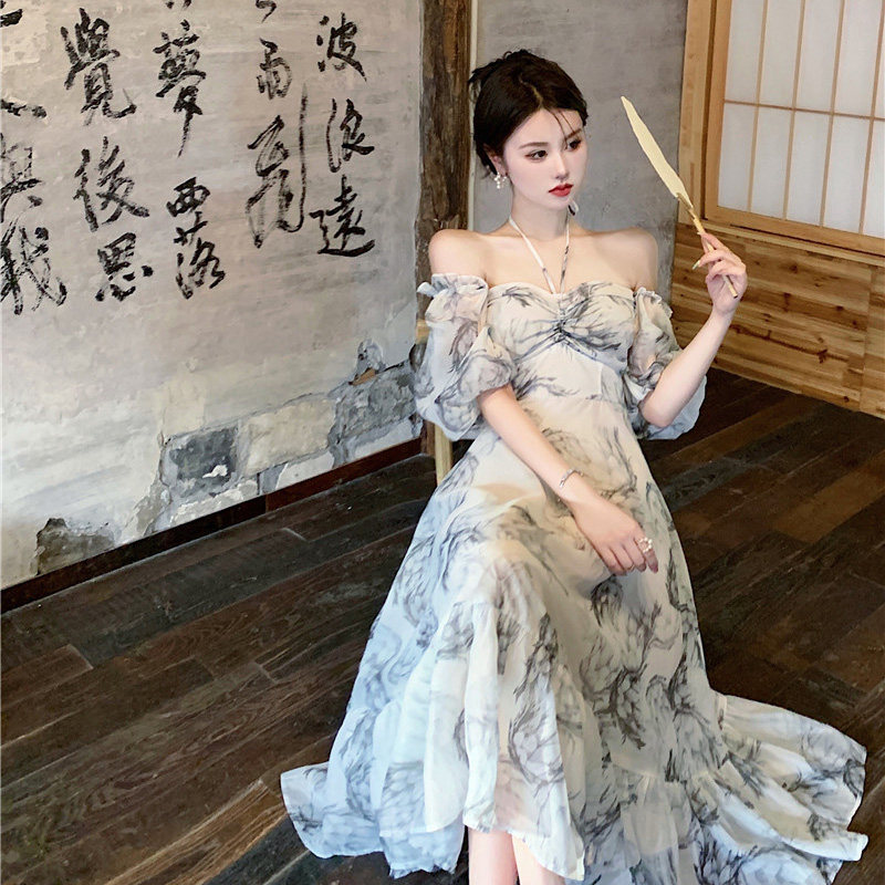 Летнее платье, ретро длинная длинная юбка, изысканный стиль, коллекция 2023, А-силуэт