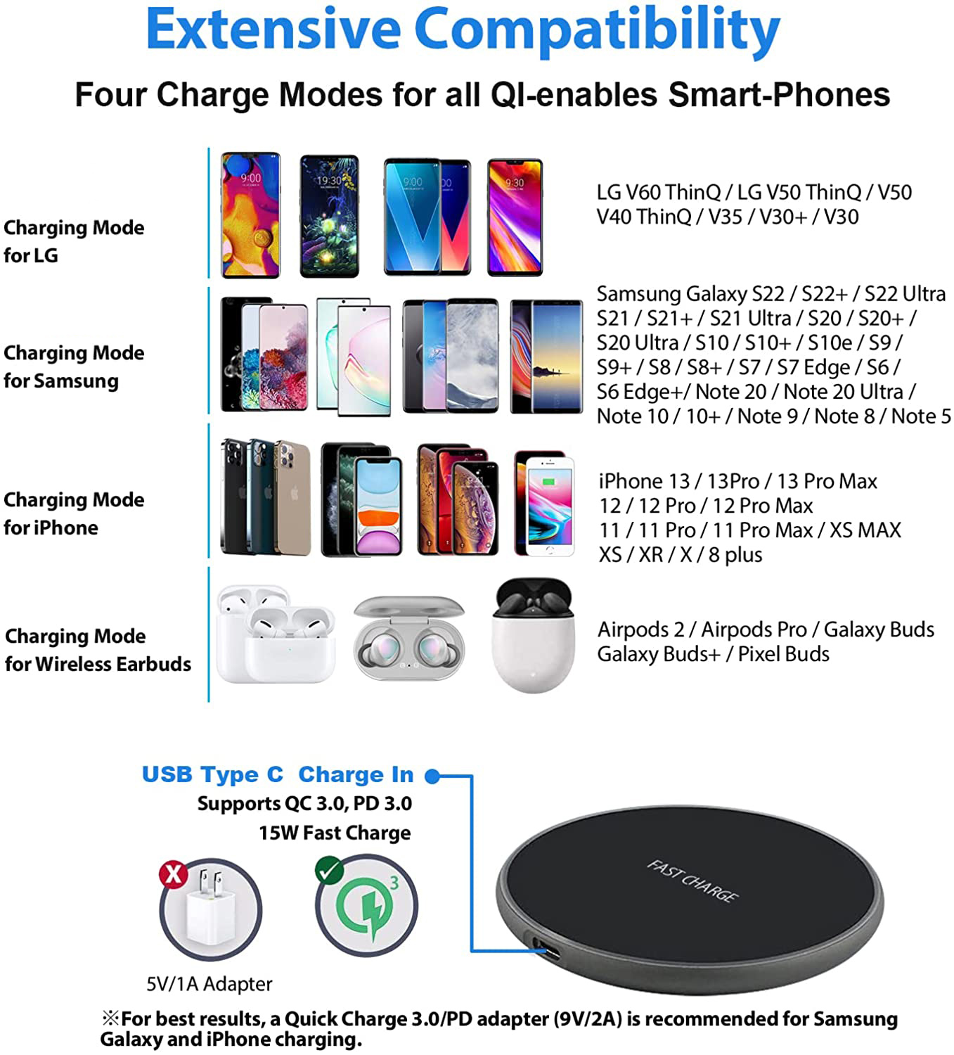 Новая беспроводная зарядная устройства 50 Вт Fast Qi для iPhone 13 12 11 X P