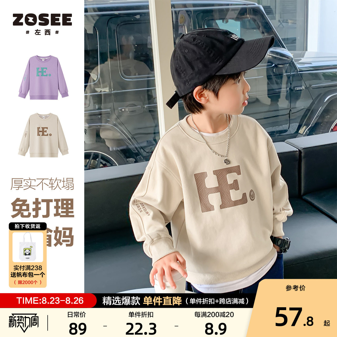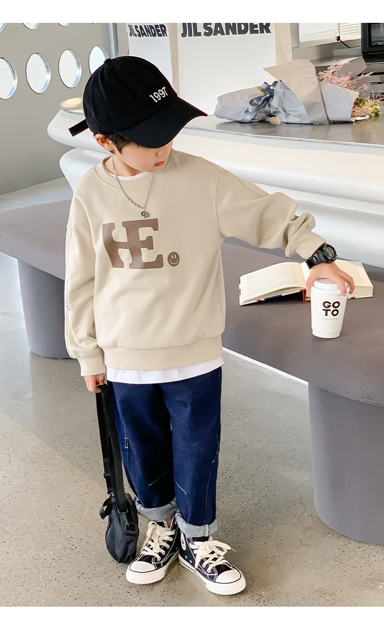 左西 Осенняя детская базовая толстовка для мальчиков, коллекция 2023, оверсайз, в западном стиле, детская одежда