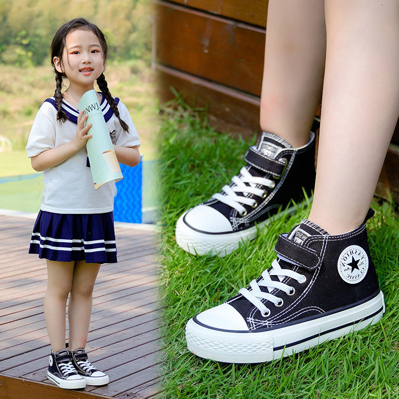 Детская высокая тканевая демисезонная черная спортивная обувь подходит для мужчин и женщин на липучке, в корейском стиле