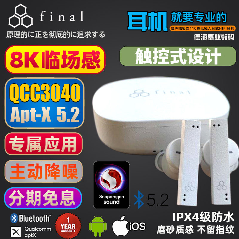 Final ZE8000 TWS Real Wireless Active Shoom Superment Bluetooth Bluetooth 5.2 aptx hifi Затычки для ушей