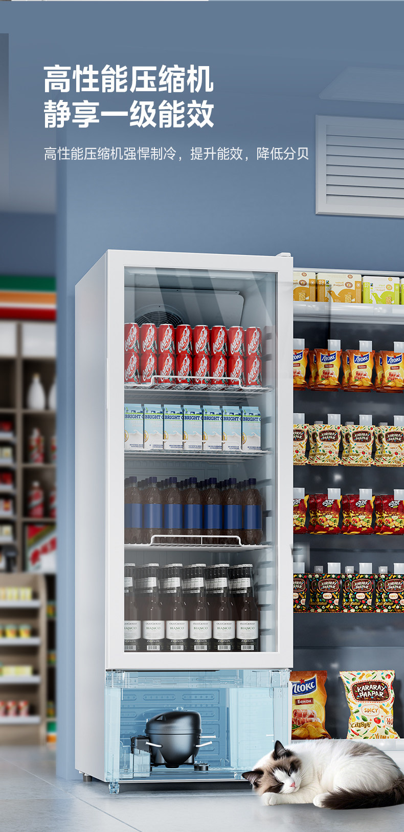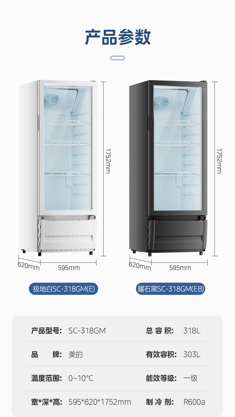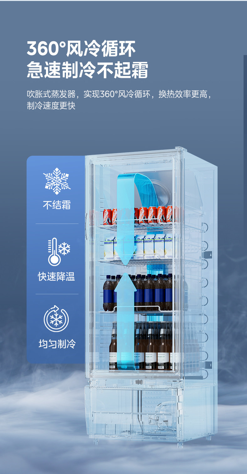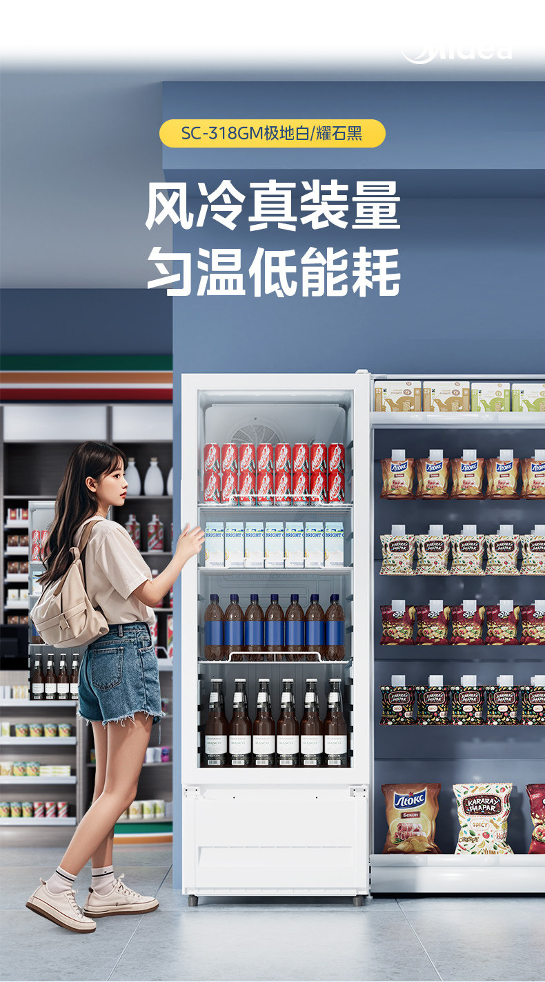 Midea 318 белая витрина для напитков, холодильная морозильная камера, шкаф для свежих продуктов, коммерческая вертикальная морозильная камера, небольшой холодильник для супермаркетов с воздушным охлаждением