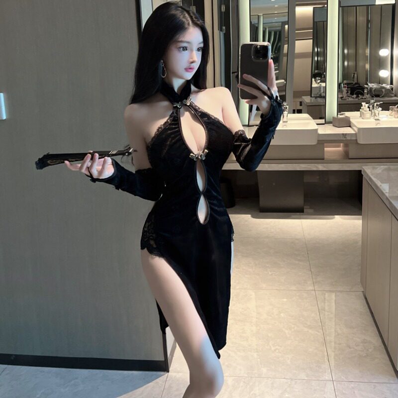 Ретро сексуальное кружевное ципао, платье, французский ретро стиль