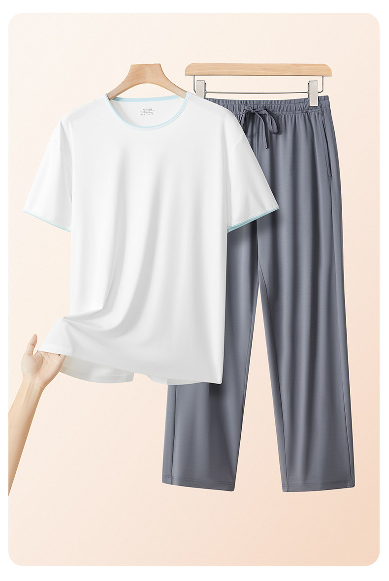 Мужская элитная летняя тонкая пижама, шелковый комплект с круглым воротником, короткий рукав