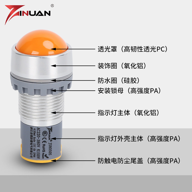 Металлический взрывобезопасный блок питания, индикаторная лампа, светильник, 22мм, 150v
