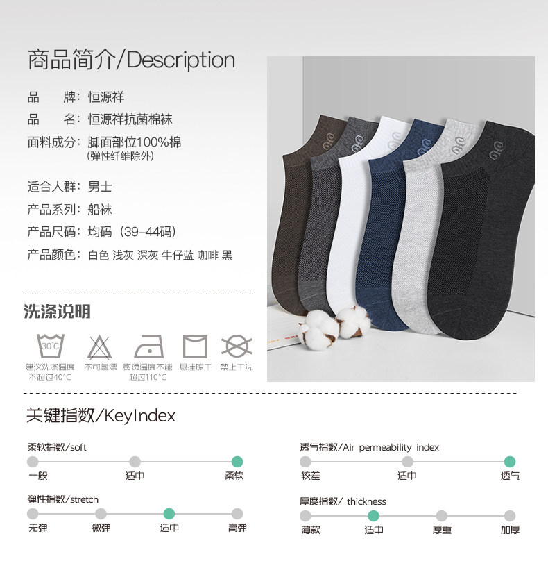 恒源祥 Мужские хлопковые антибактериальные дышащие тонкие носки, впитывают пот и запах