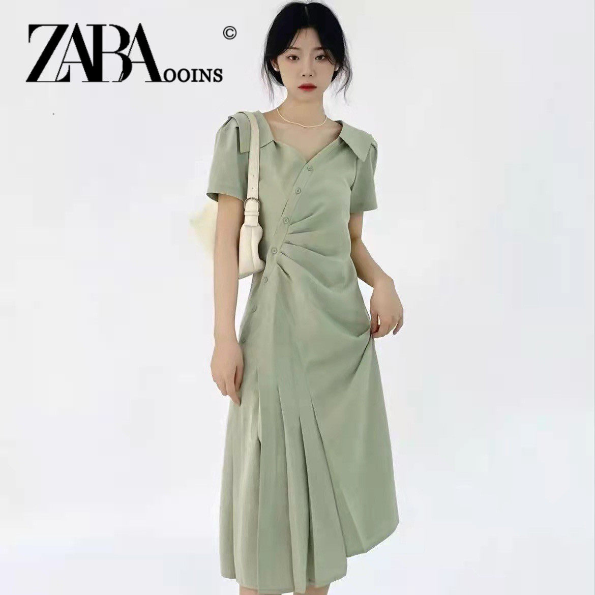 Зеленая рубашка, платье, дизайнерский приталенный корсет, длинная юбка, V-образный вырез, тренд сезона