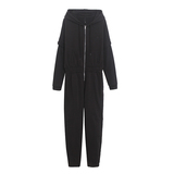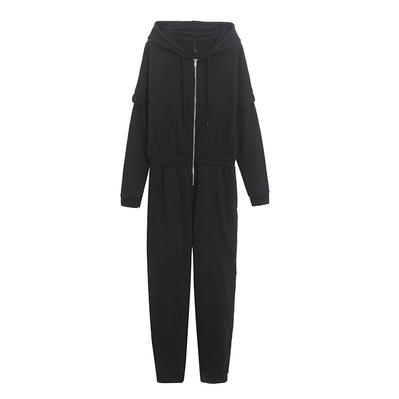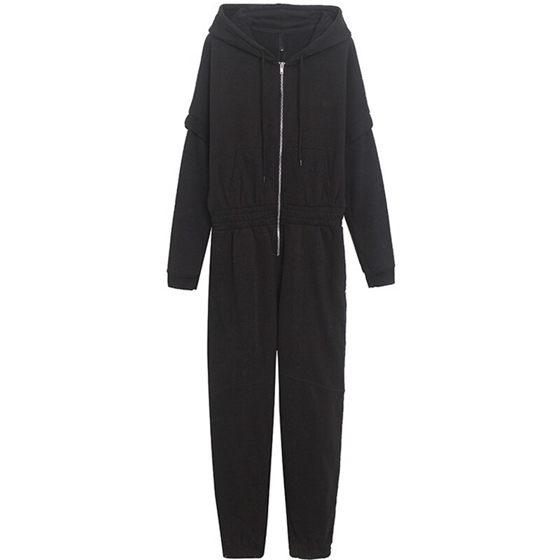 Утепленный комбинезон для отдыха с капюшоном с молнией, трендовые приталенные штаны, свободный крой, высокая талия