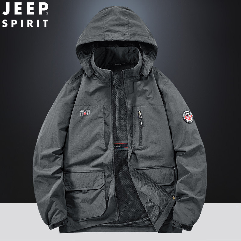 Jeep, джип, осенняя ветрозащитная куртка, дорожный быстросохнущий плащ с капюшоном, оверсайз
