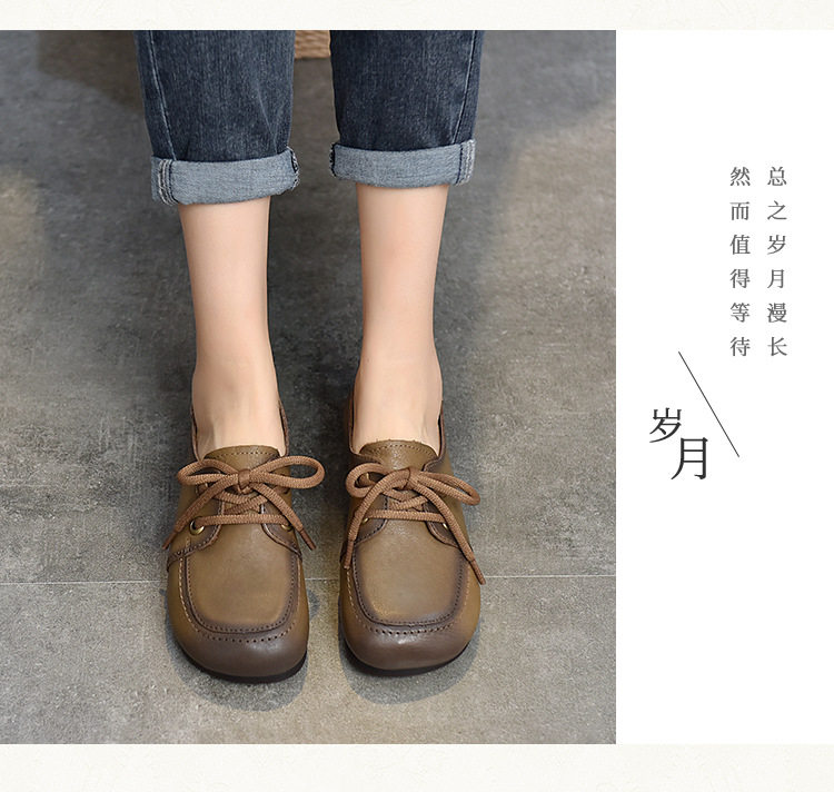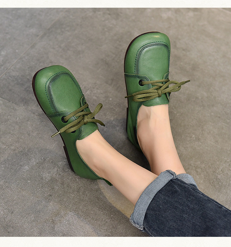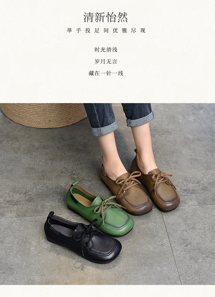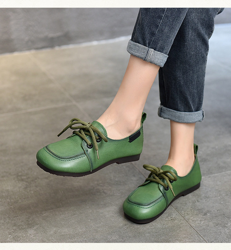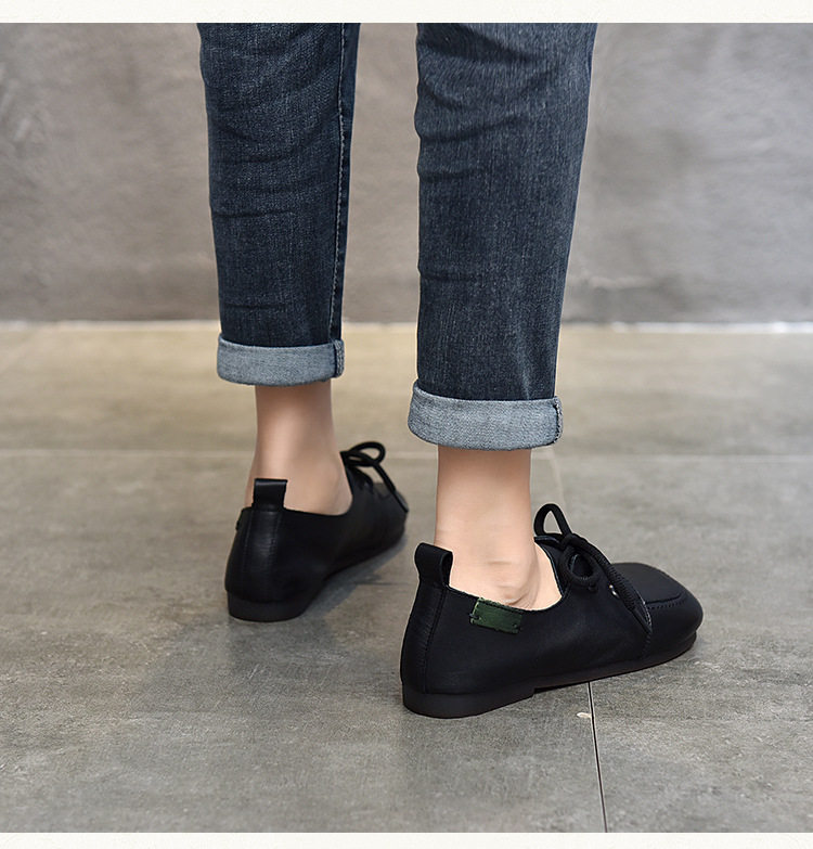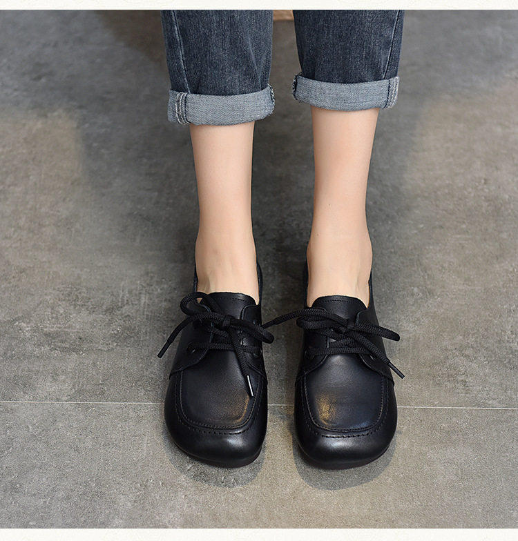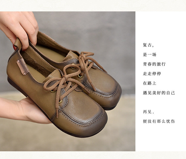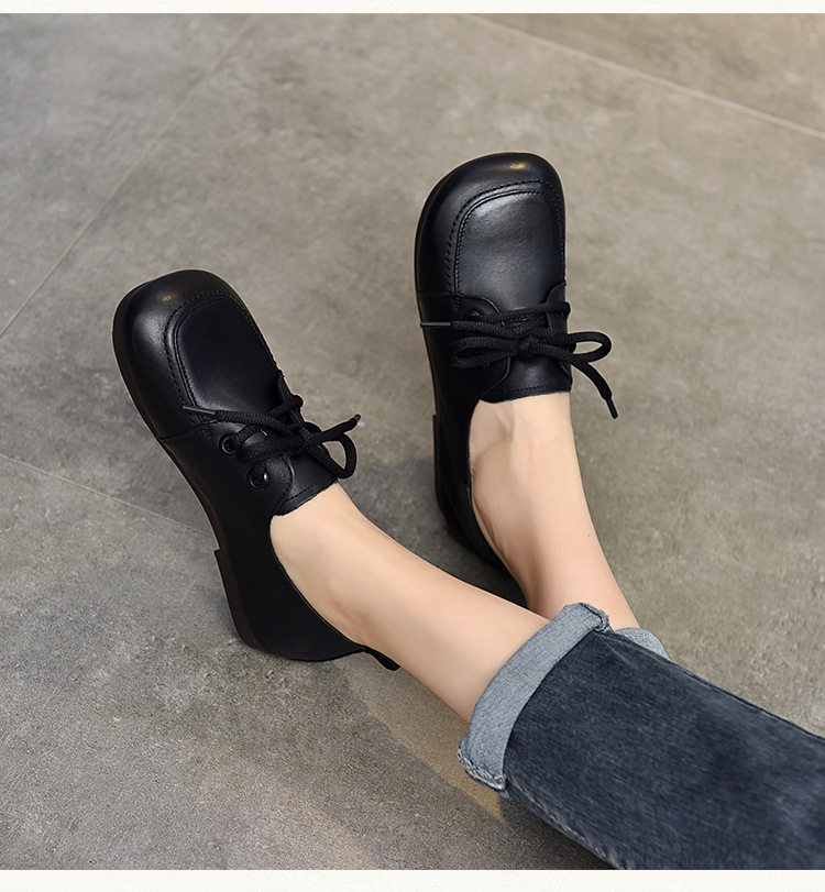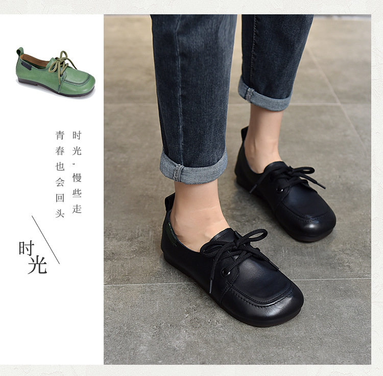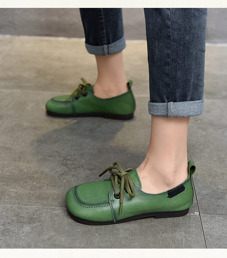 Туфли из натуральной кожи ручной работы, весна-лето 2023, новые женские туфли в стиле ретро с квадратным носком, туфли-бобы на плоской подошве, бабушкины туфли из воловьей кожи на мягкой подошве