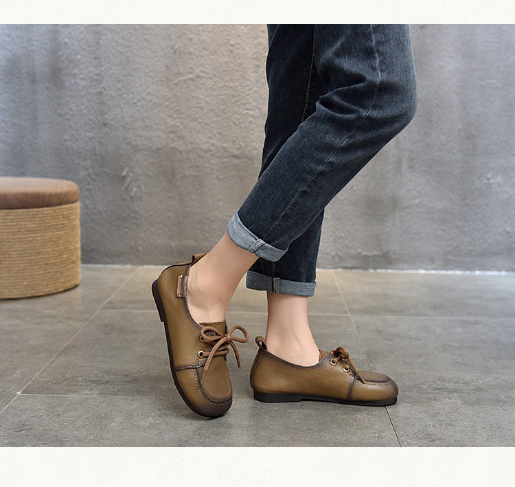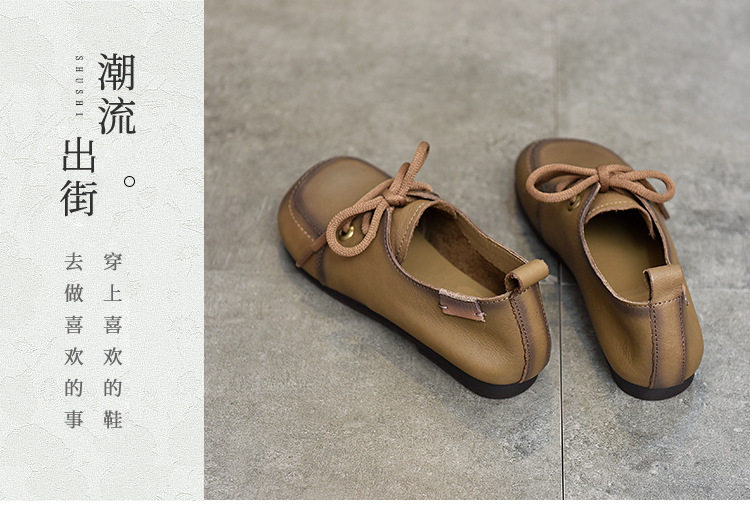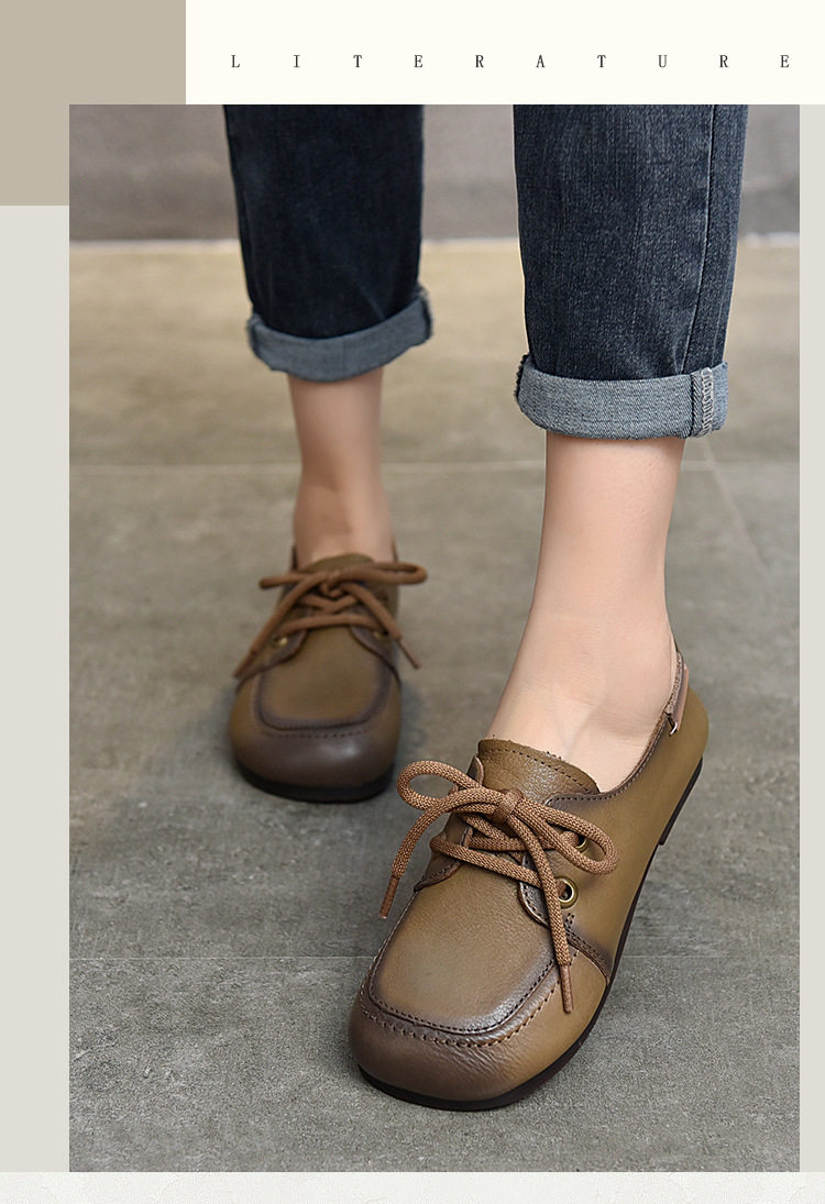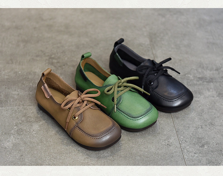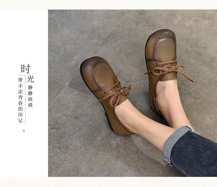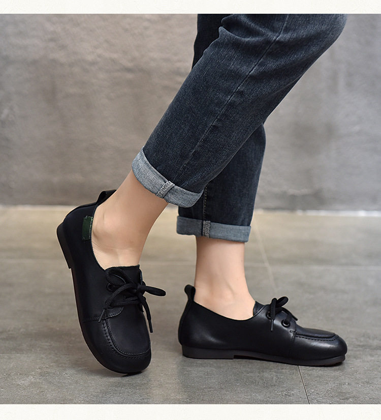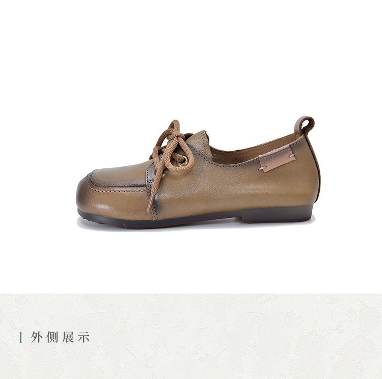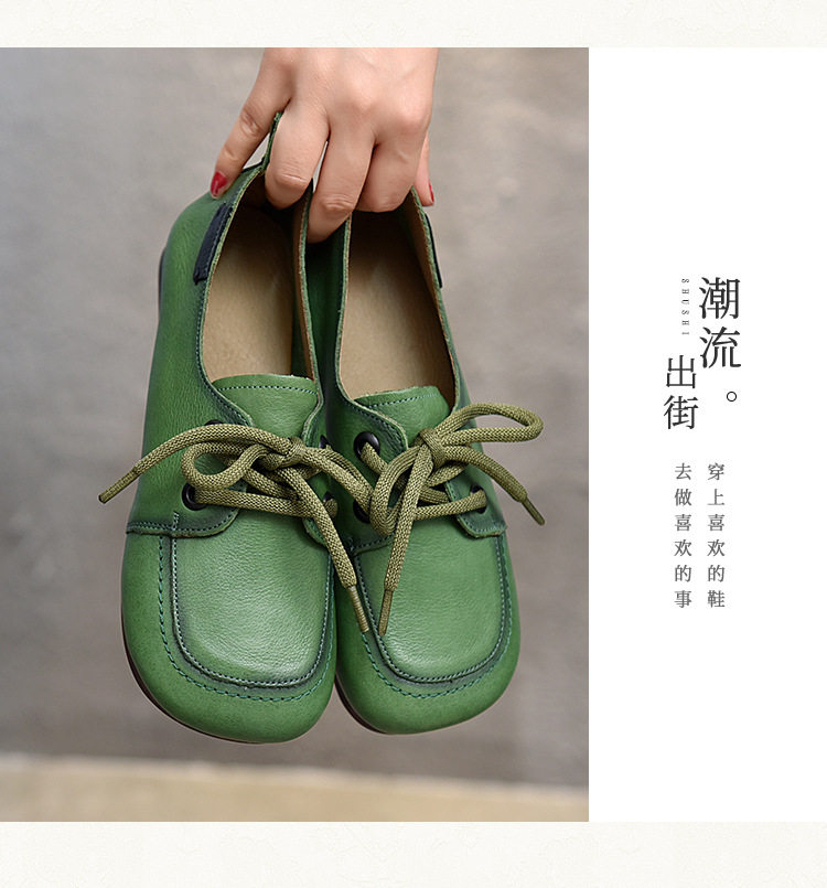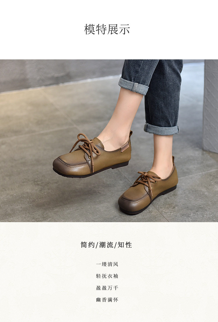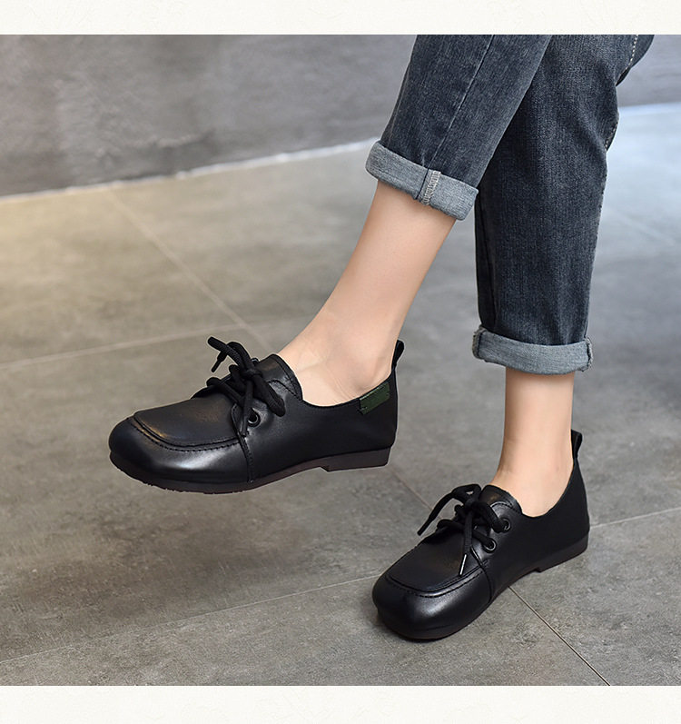 Туфли из натуральной кожи ручной работы, весна-лето 2023, новые женские туфли в стиле ретро с квадратным носком, туфли-бобы на плоской подошве, бабушкины туфли из воловьей кожи на мягкой подошве
