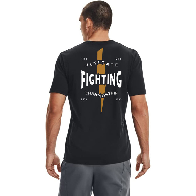 Хлопковая спортивная черная боксерская футболка с круглым воротником, короткий рукав