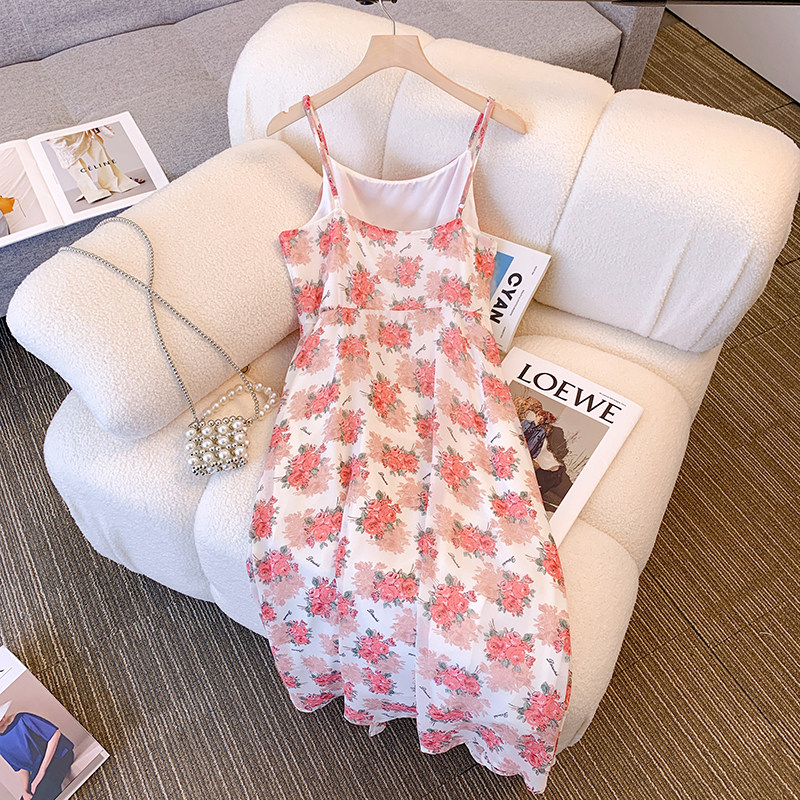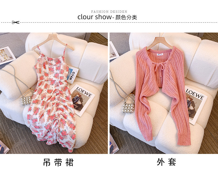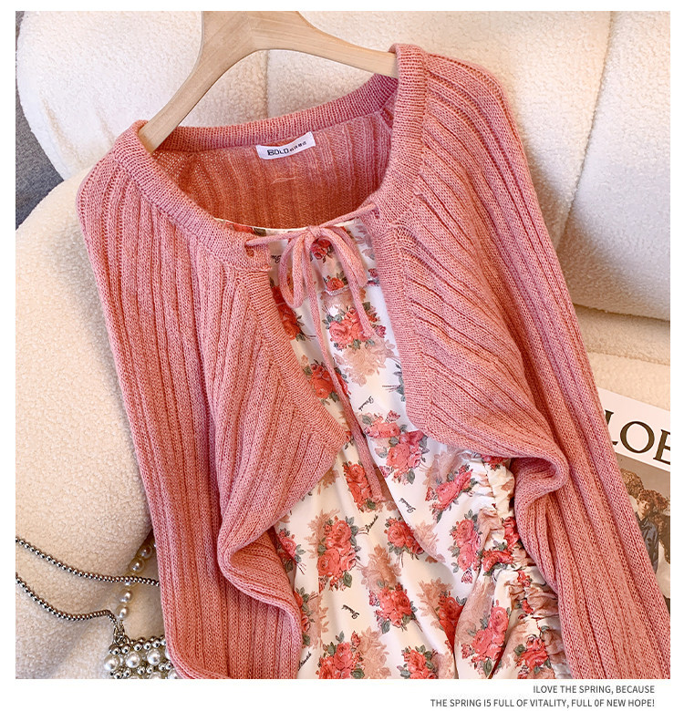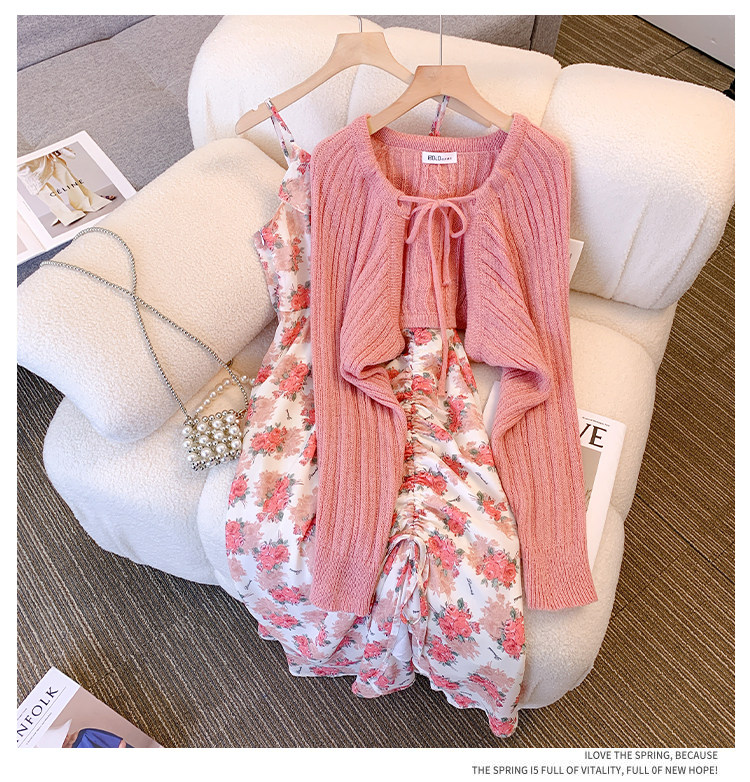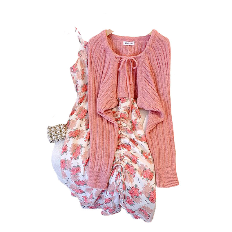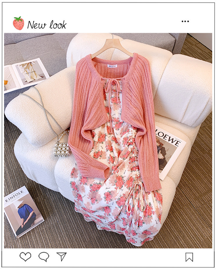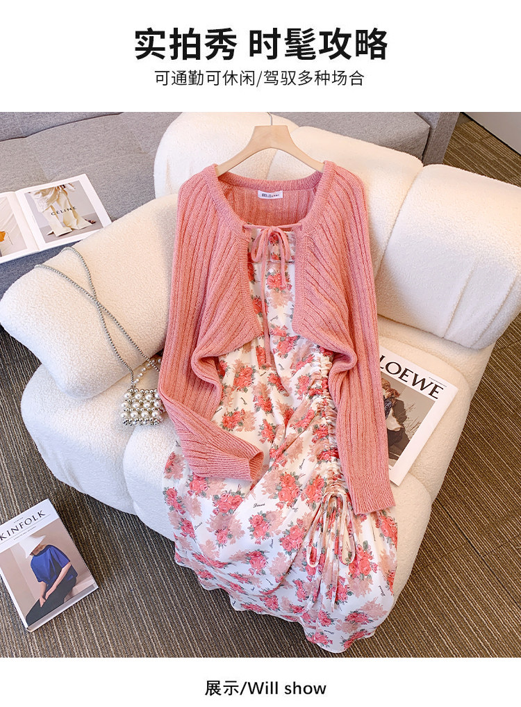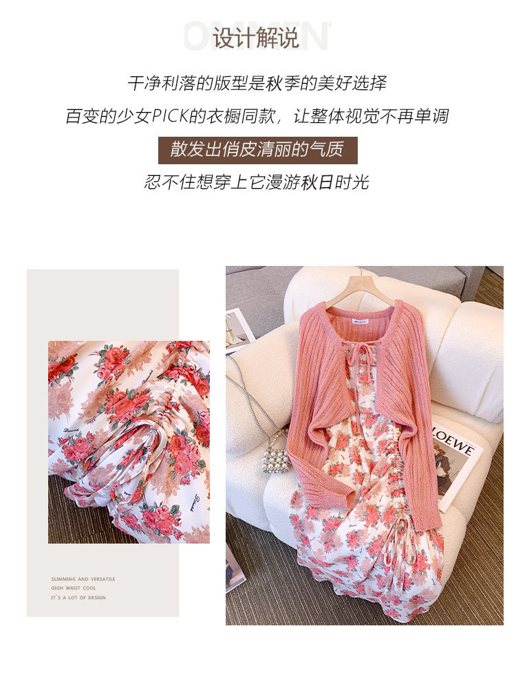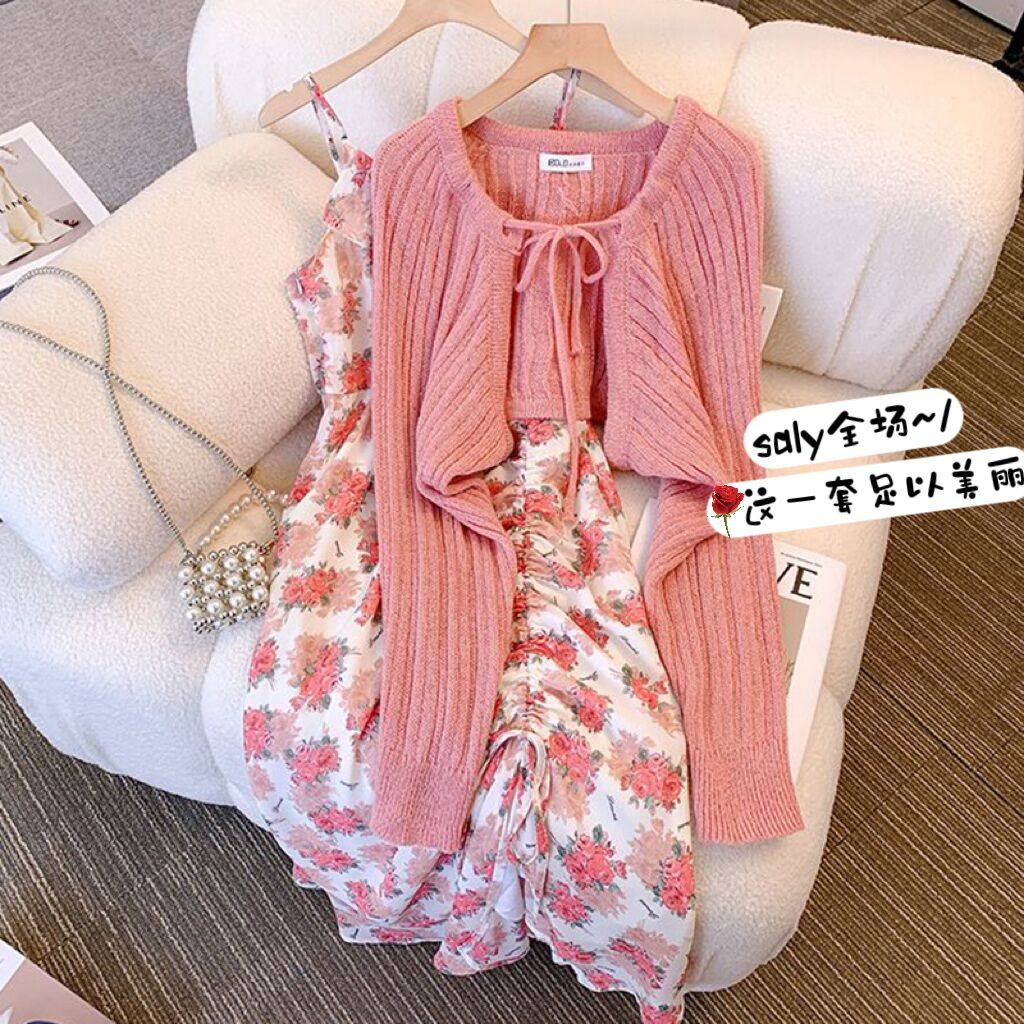 Весеннее милое платье, кардиган, комплект, большой размер, 2023, французский стиль, цветочный принт
