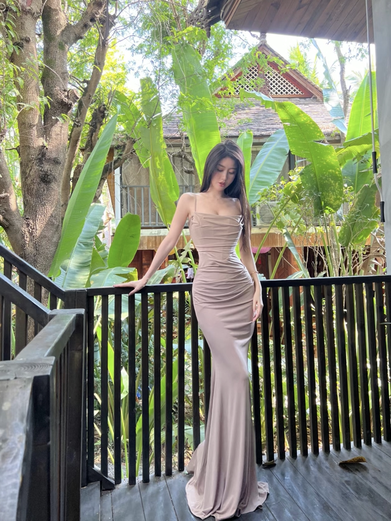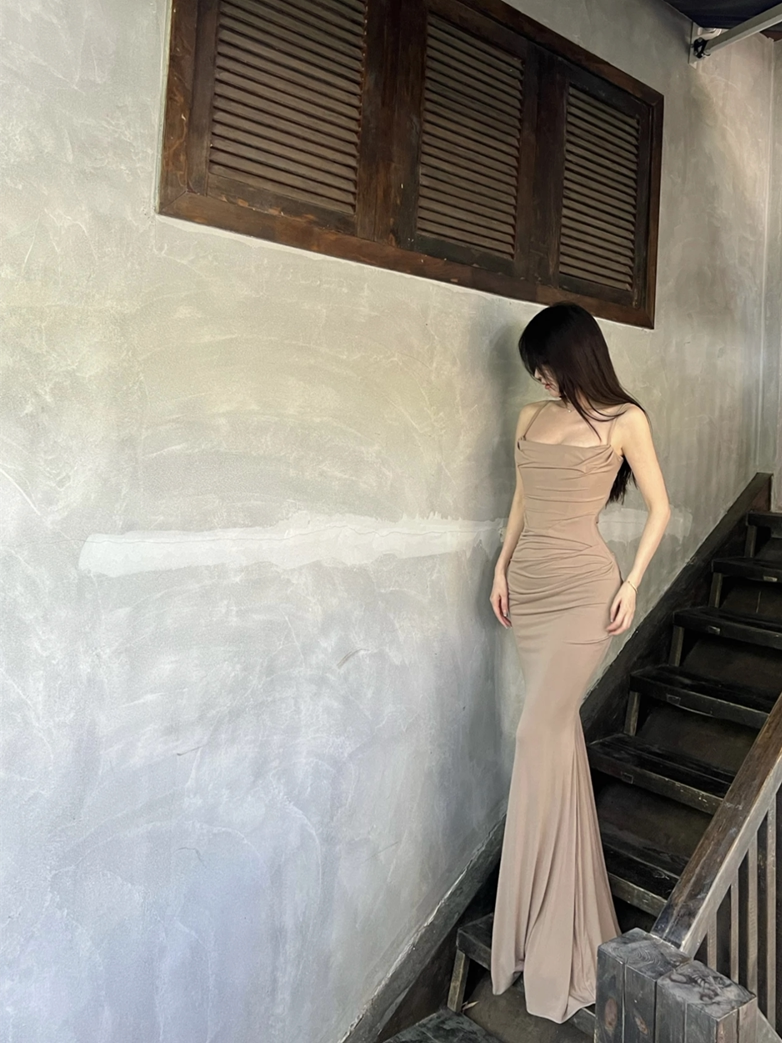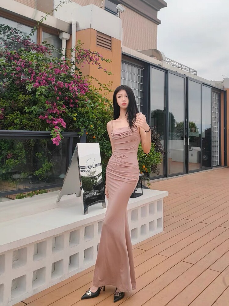 Младшая леди дом такое же чистое желание повесить рыбную кость талия сексуальное спина высокое платье женская женщина