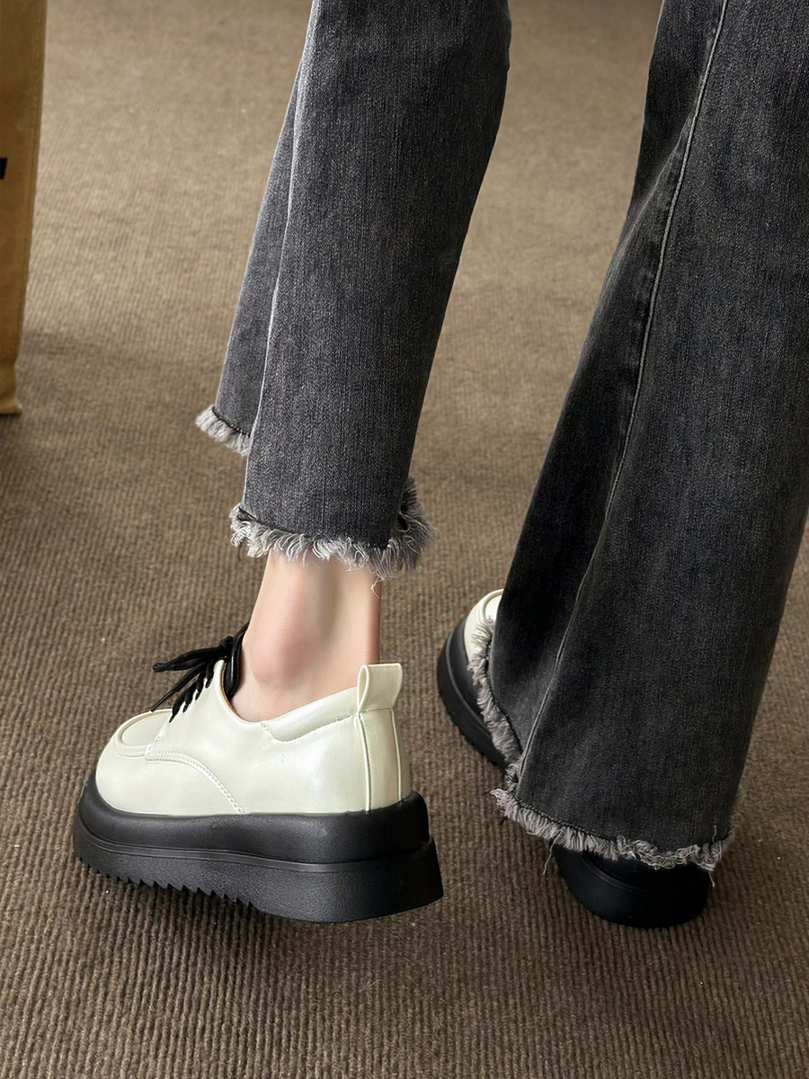 Весенняя демисезонная белая универсальная японская обувь на платформе для кожаной обуви в английском стиле, тренд сезона, в британском стиле