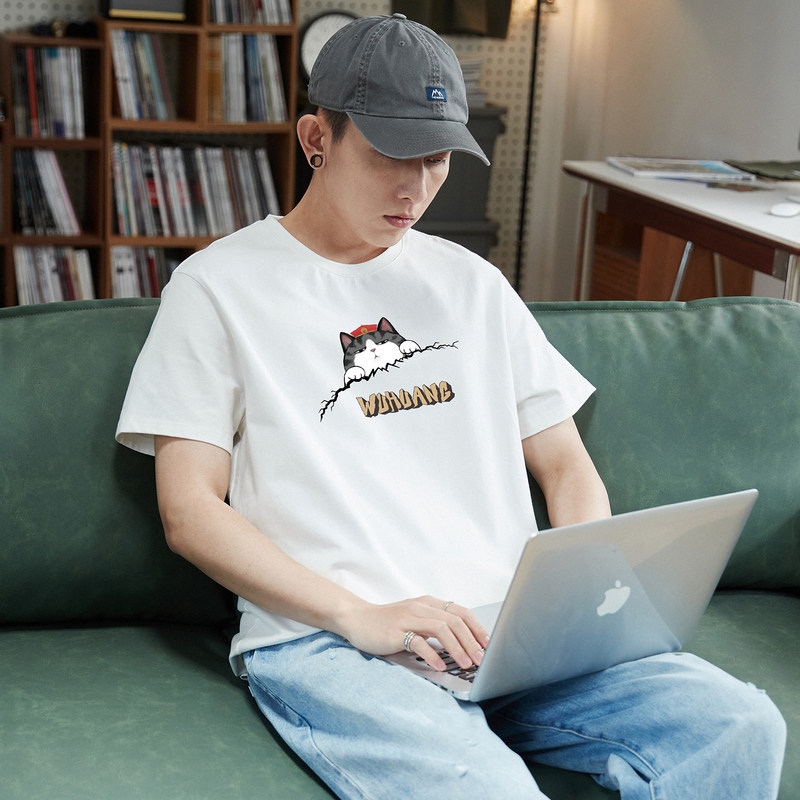 Летняя хлопковая футболка с коротким рукавом для отдыха с круглым воротником, оверсайз