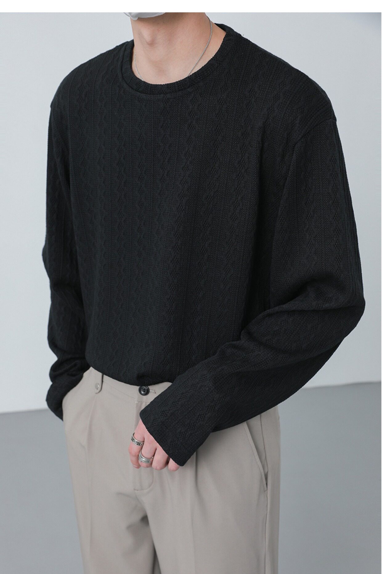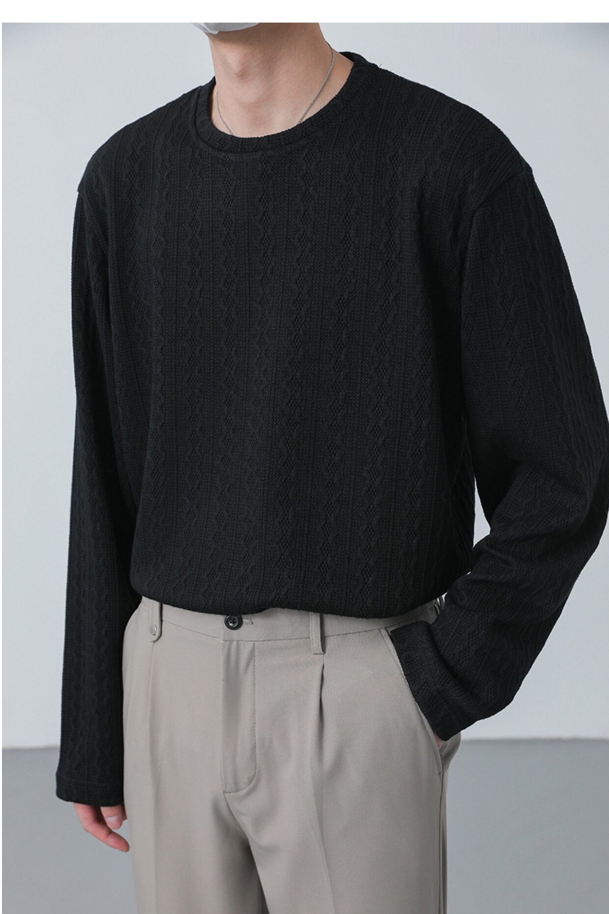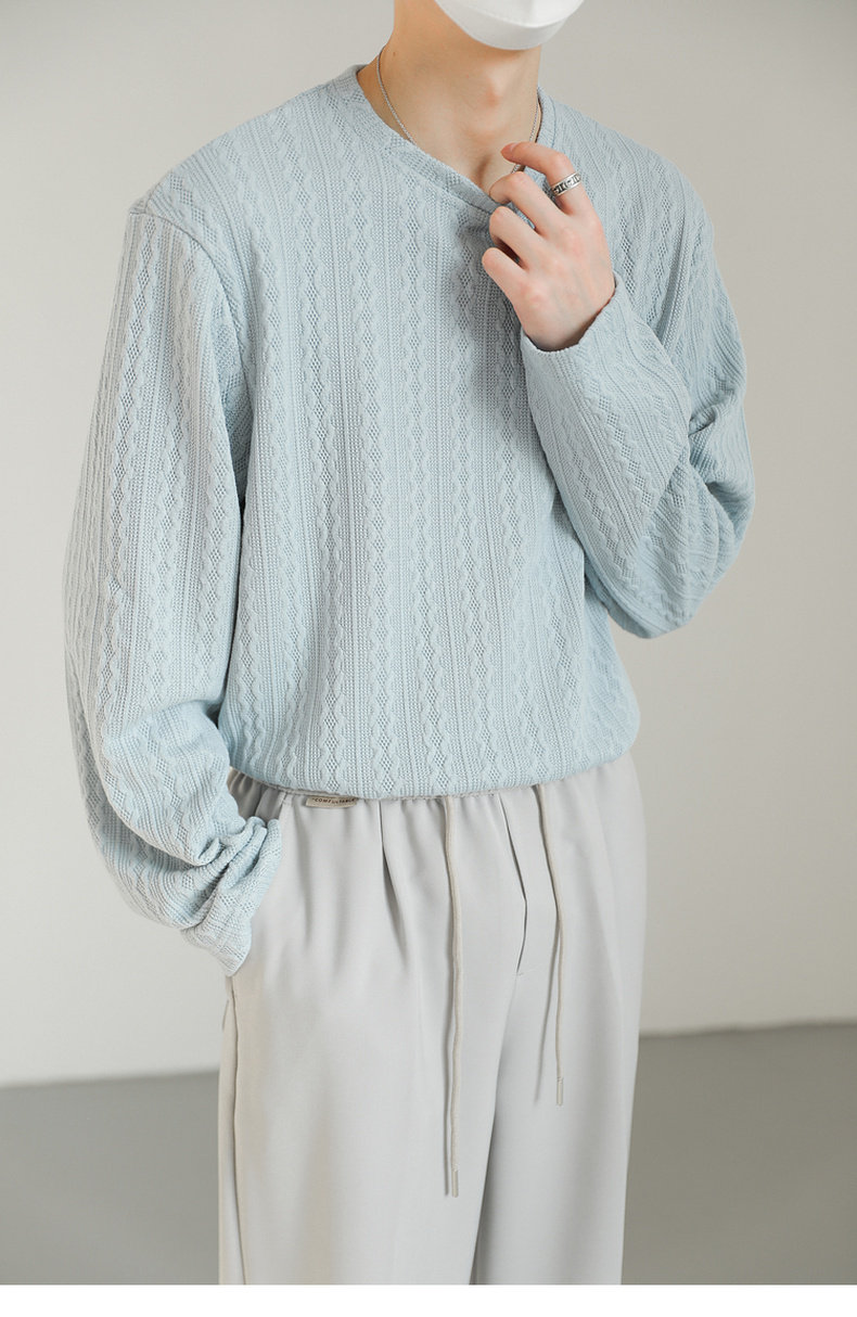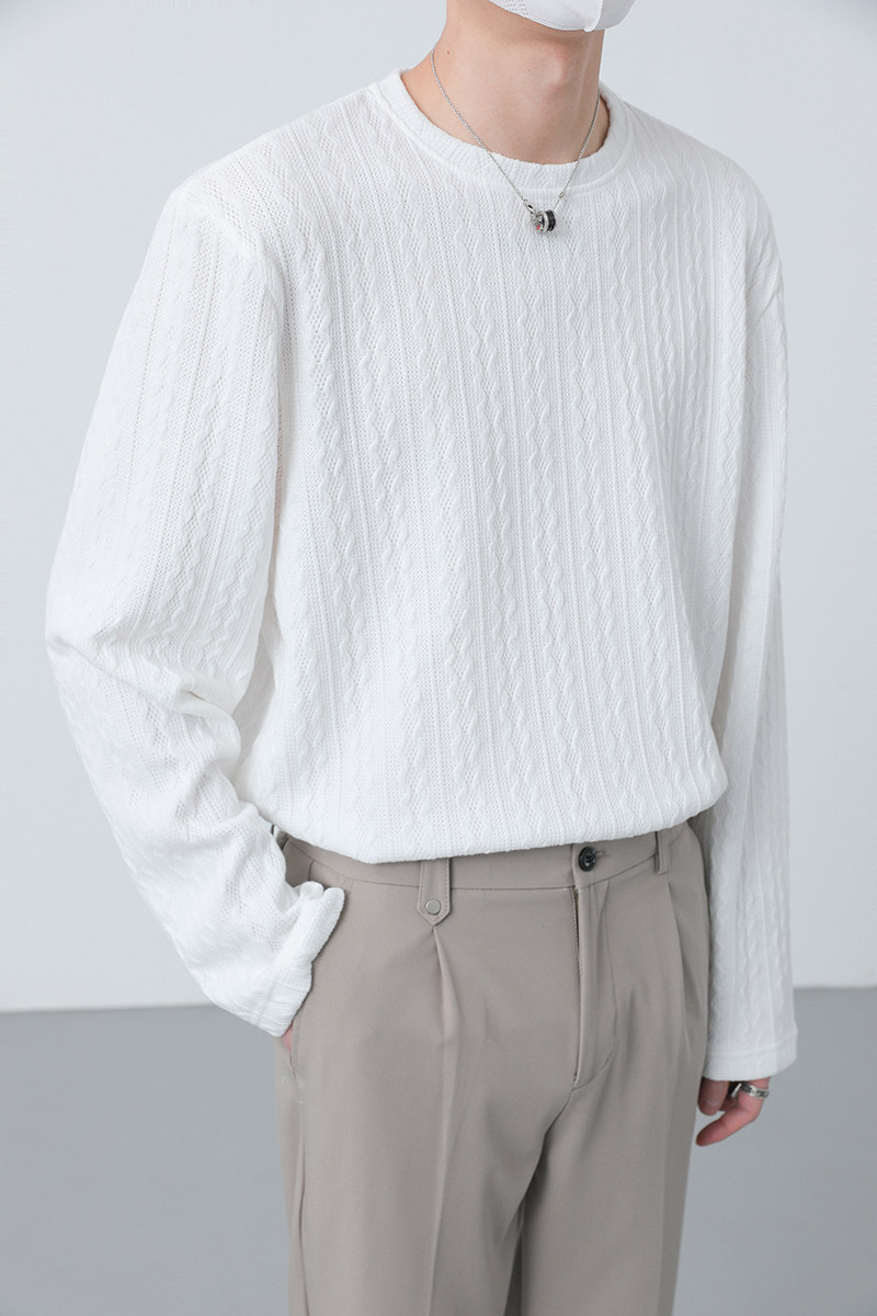 Tide, демисезонный трикотажный лонгслив с круглым воротником, в корейском стиле