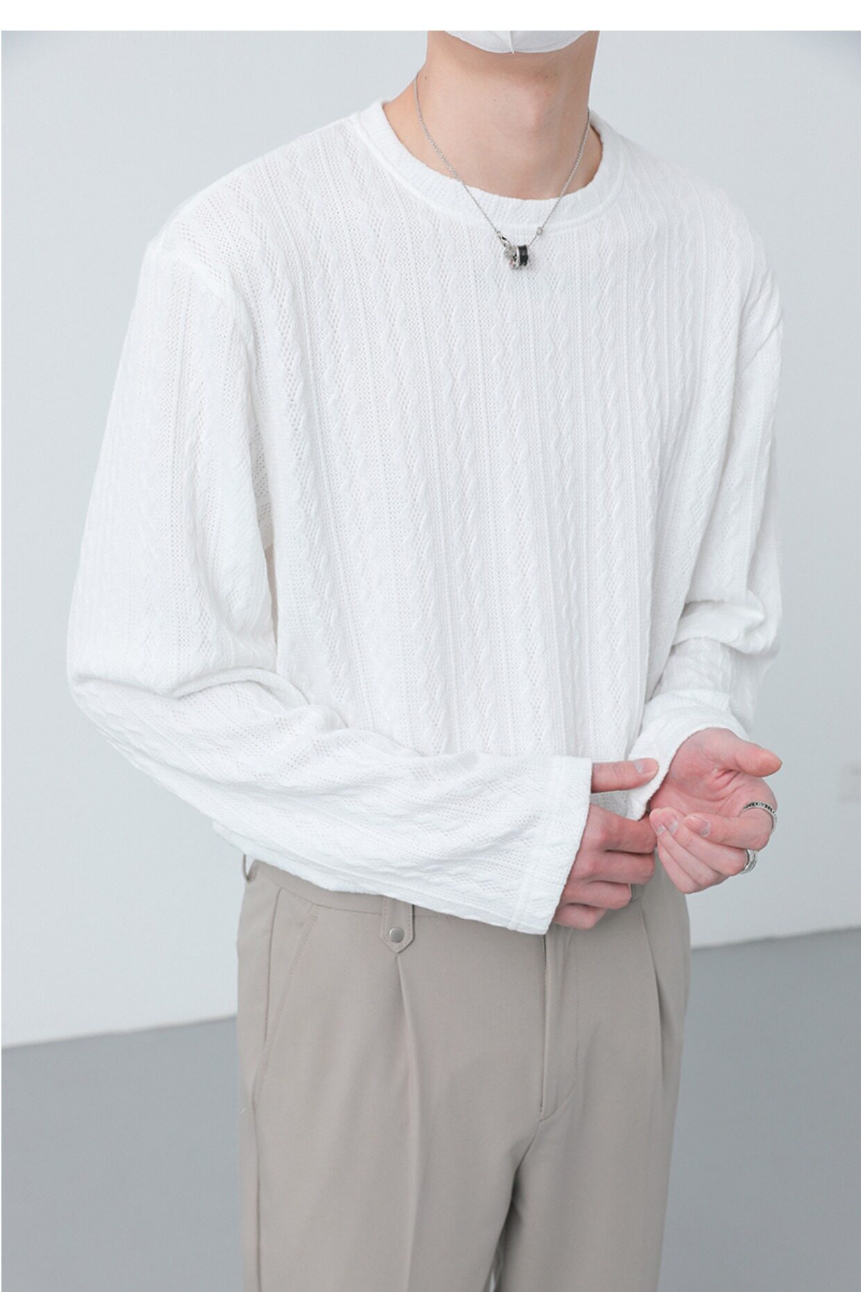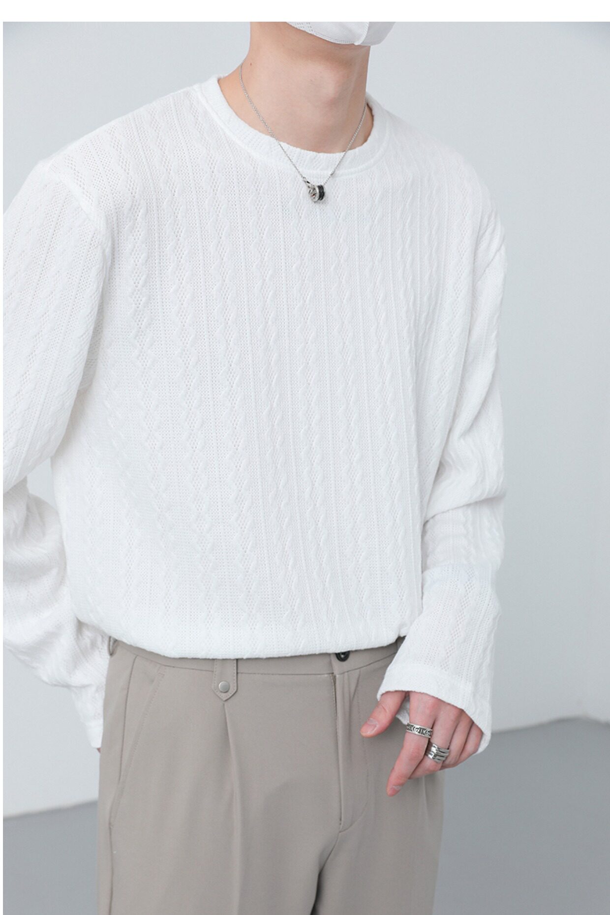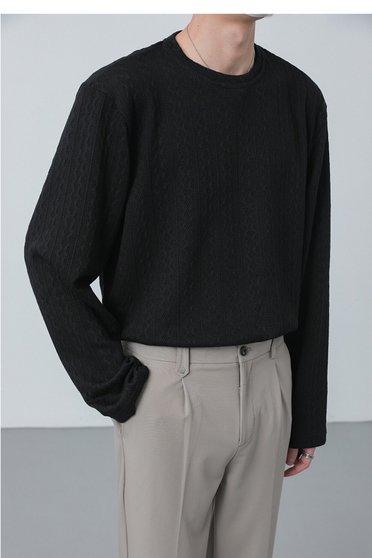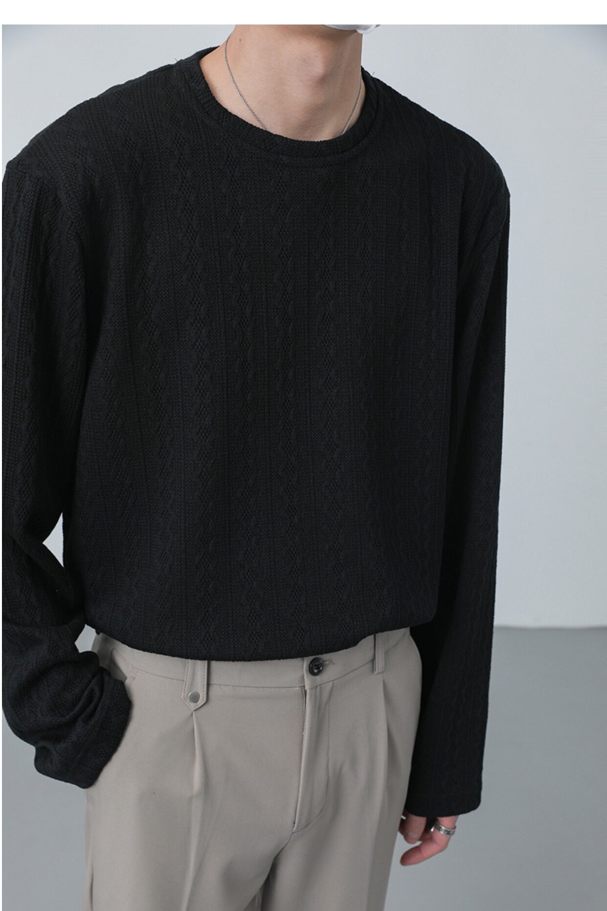Tide, демисезонный трикотажный лонгслив с круглым воротником, в корейском стиле