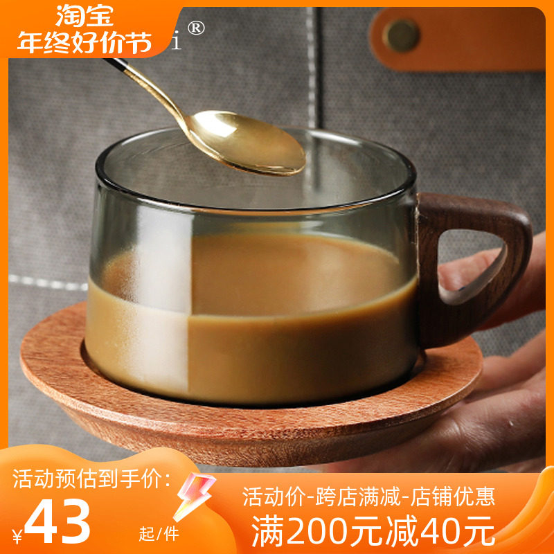Creative American American Glass Coffee Cup High -Exquisite Walnut Cup Disc