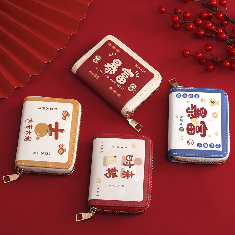 Милый мультяшный вместительный и большой картхолдер с молнией, антимагнитные маленькие ультратонкие карточки