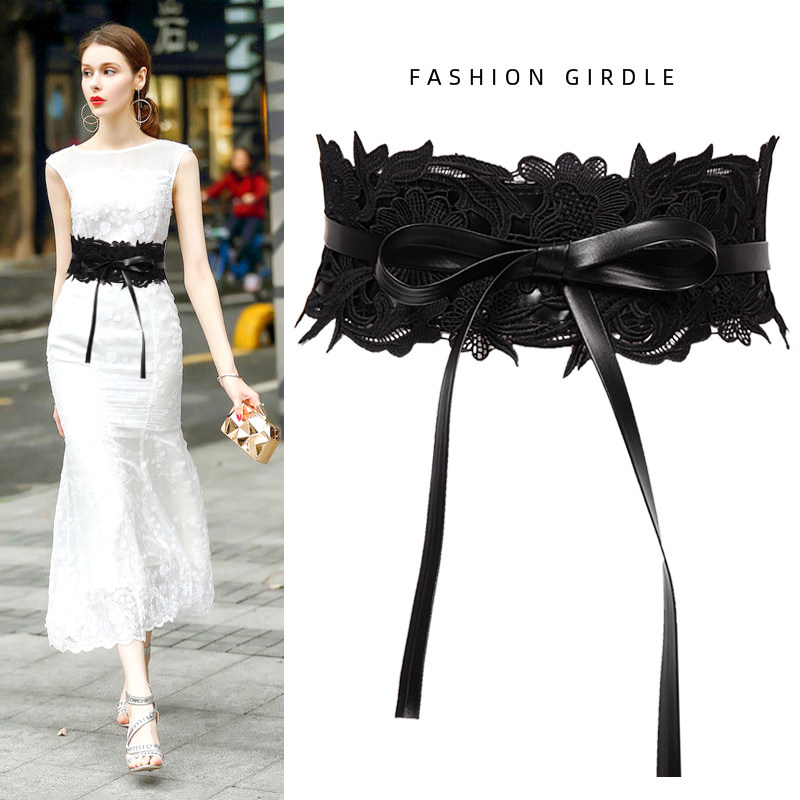Черный кружевной утягивающий пояс на талию, рубашка, летнее платье, юбка, ремень, ретро аксессуар, французский стиль, изысканный стиль