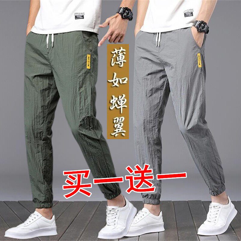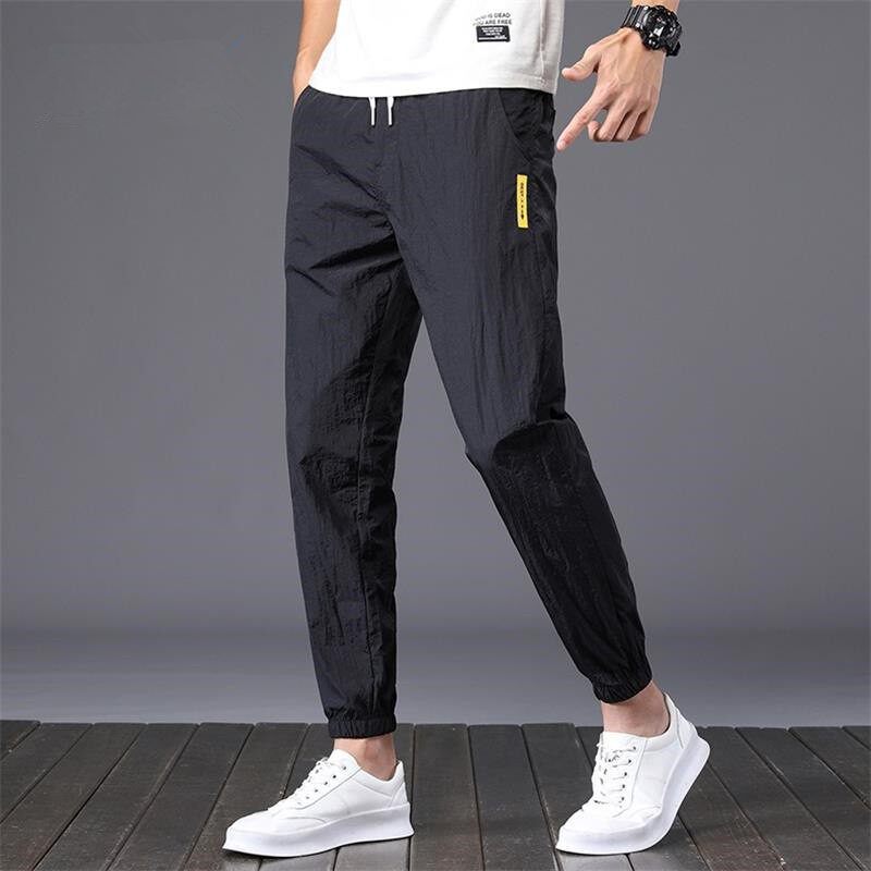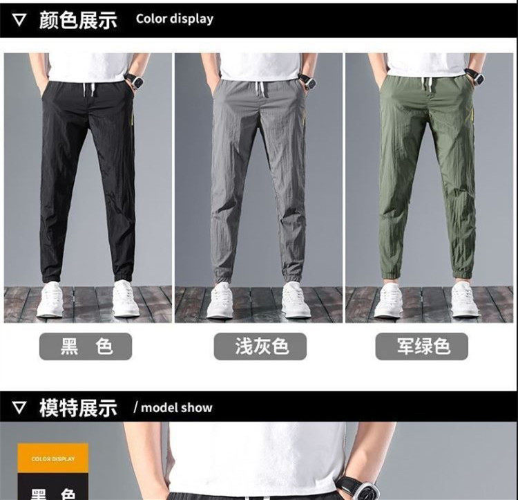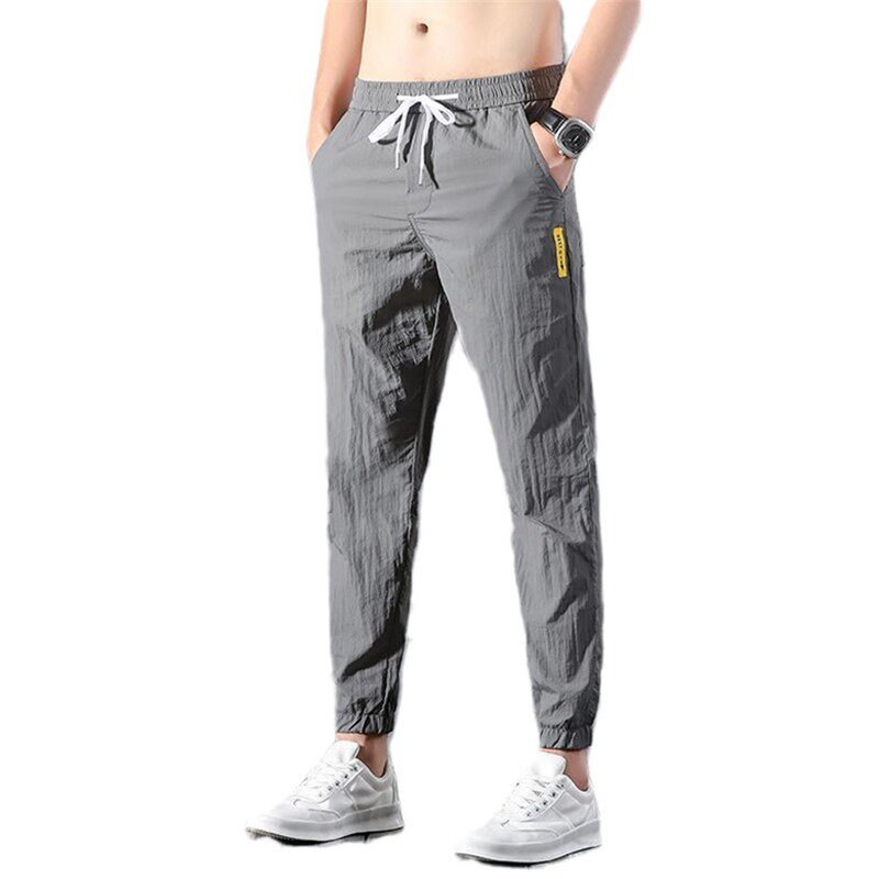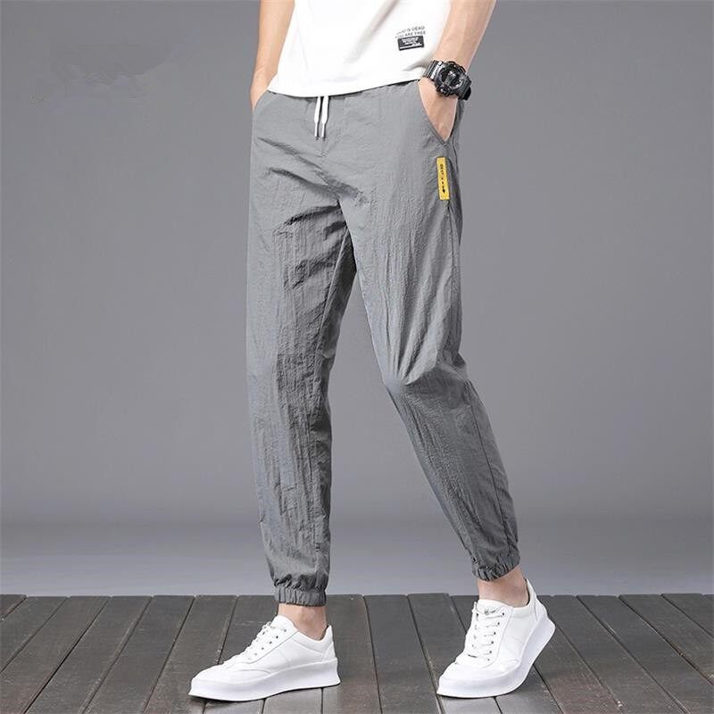 Шелковые спортивные летние тонкие быстросохнущие дышащие штаны, эластичная талия