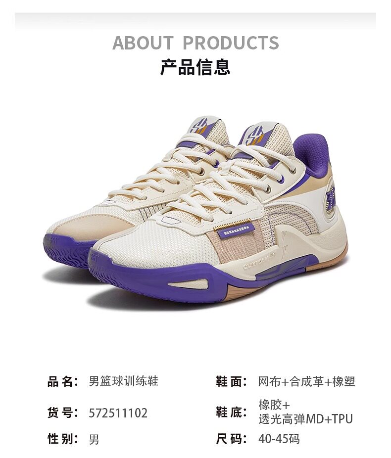 Мужская обувь 361. Спортивная обувь. Новинка весны 2024. 361. Износостойкие баскетбольные тренировочные кроссовки Q-Elastic для бетонного пола с отскоком для мужчин.