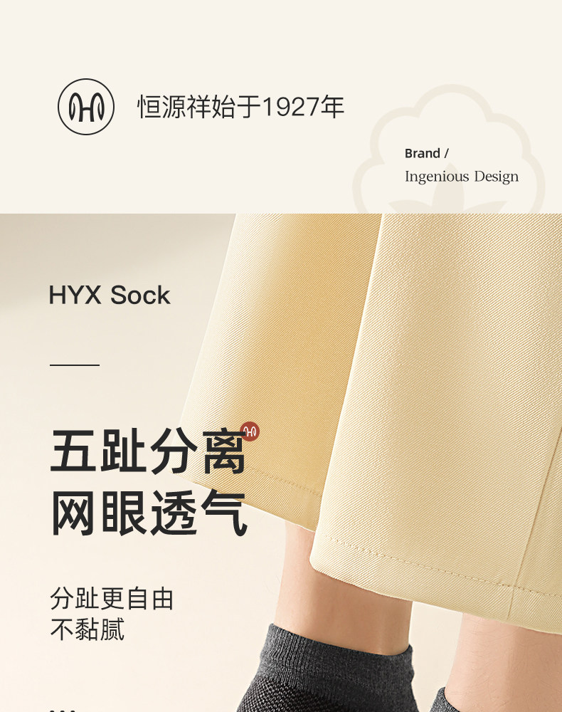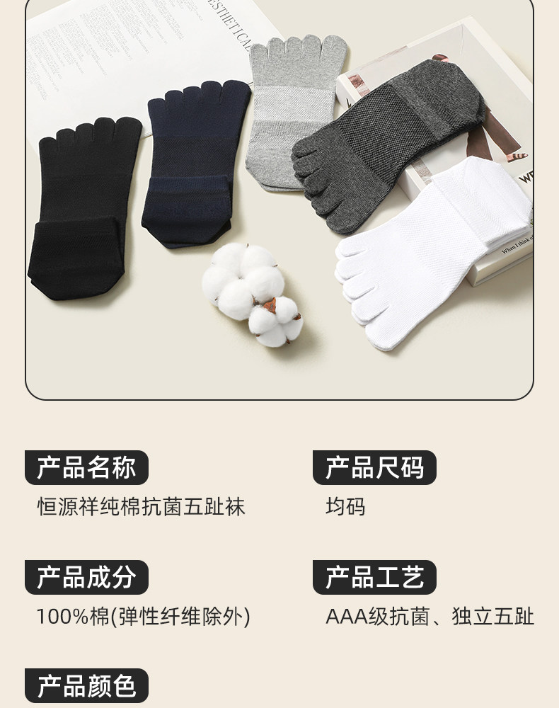 恒源祥 Мужские носки из чистого хлопка, летние тонкие, впитывающие пот, дышащие мужские носки с раздельным носком, весенние и осенние спортивные носки с дезодорантом.