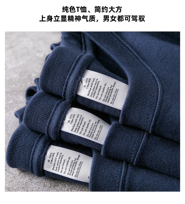 Темно-синяя хлопковая однотонная футболка с коротким рукавом подходит для мужчин и женщин
