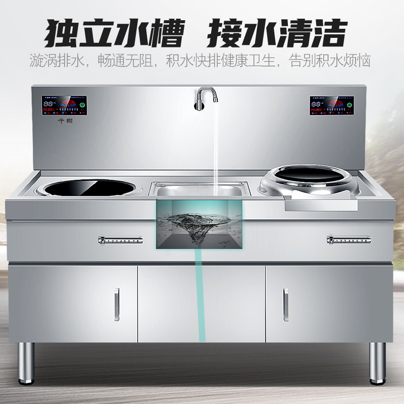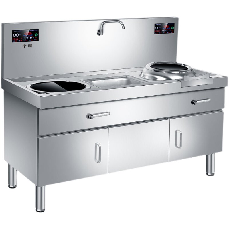 Коммерческая плоская вогнутая комбинированная комбинация с высоким содержанием силового шкафа -тип электромагнитной плиты печи -фарфяная печь, печь, Трехфазное электрическое кухонное оборудование мощностью 15 кВт
