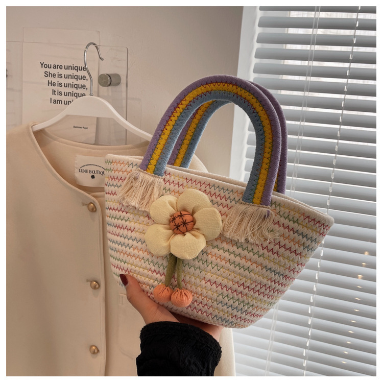 Льняная сумка, радужная универсальная свежая сумка через плечо, подарок на день рождения
