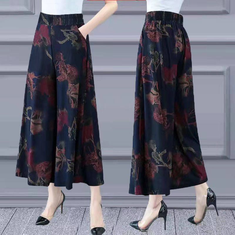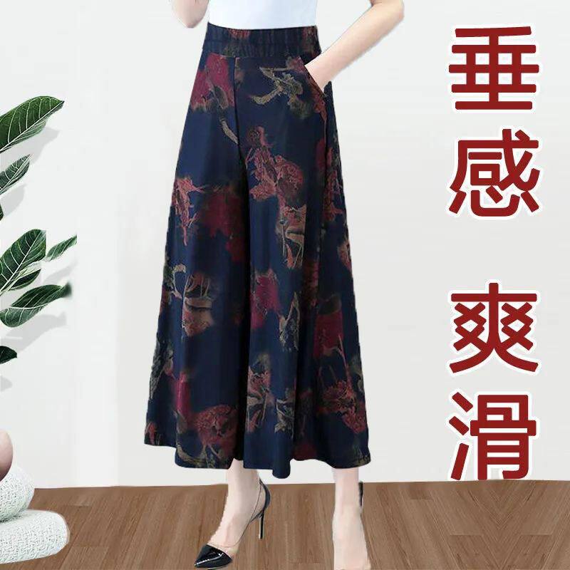 Летние шелковые тонкие штаны, для среднего возраста, свободный прямой крой