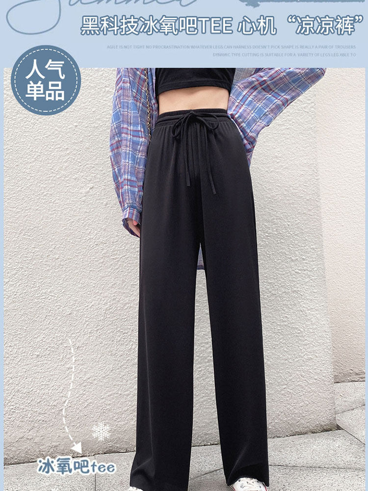 Шелковые весенние летние трикотажные штаны, высокая талия, свободный прямой крой