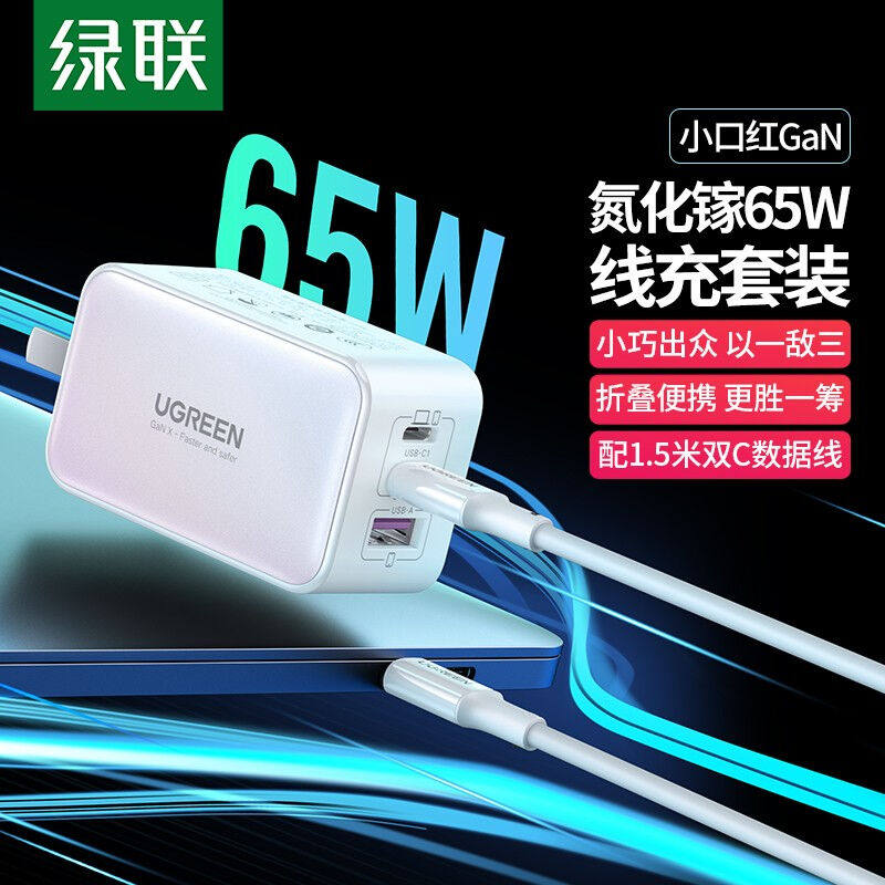 Greenlink (Ugreen) Маленькая помада Gan Gan PD65W Многопортовое зарядное устройство, применимое для Apple 14 HUA