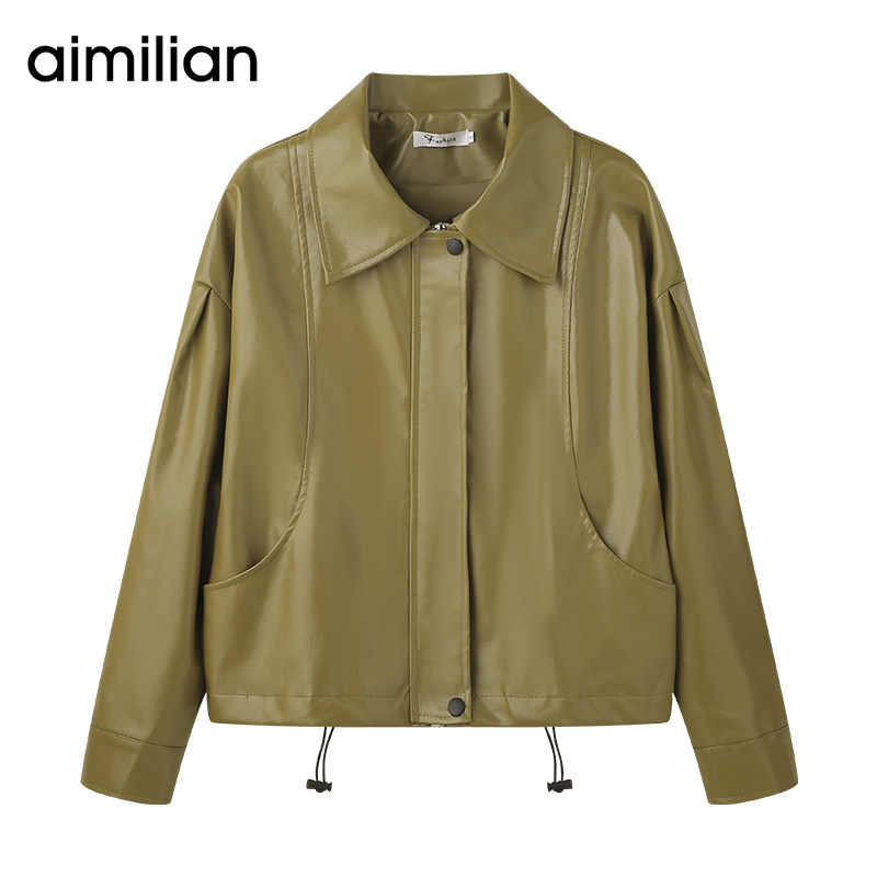 艾米恋 Осенняя куртка с молнией, полиуретановый ретро лонгслив, оверсайз