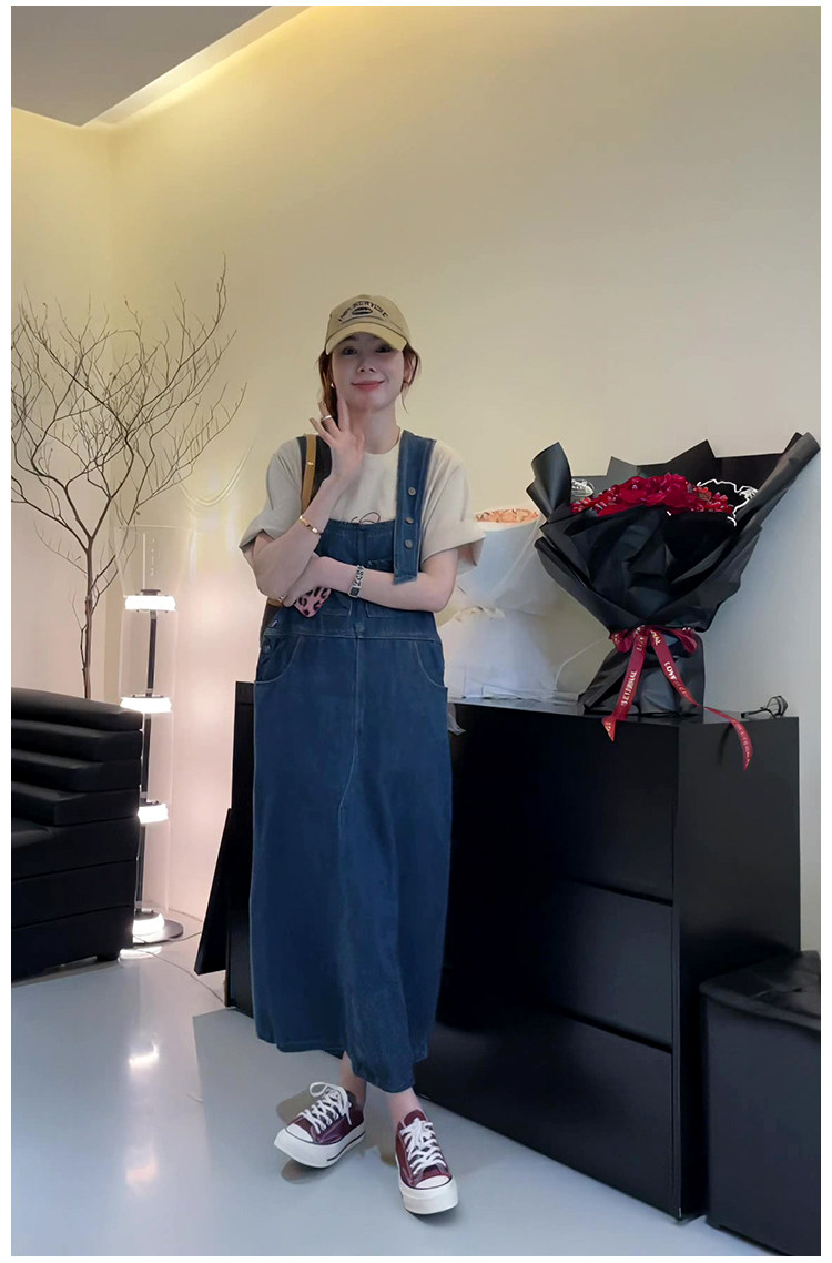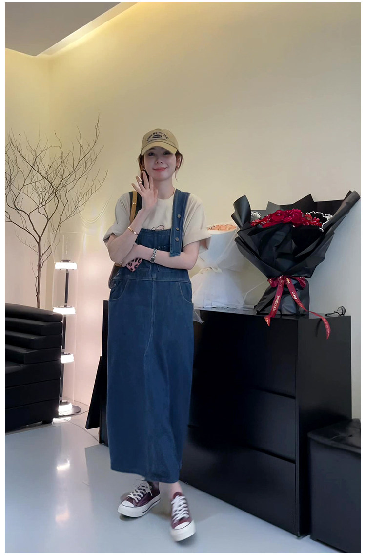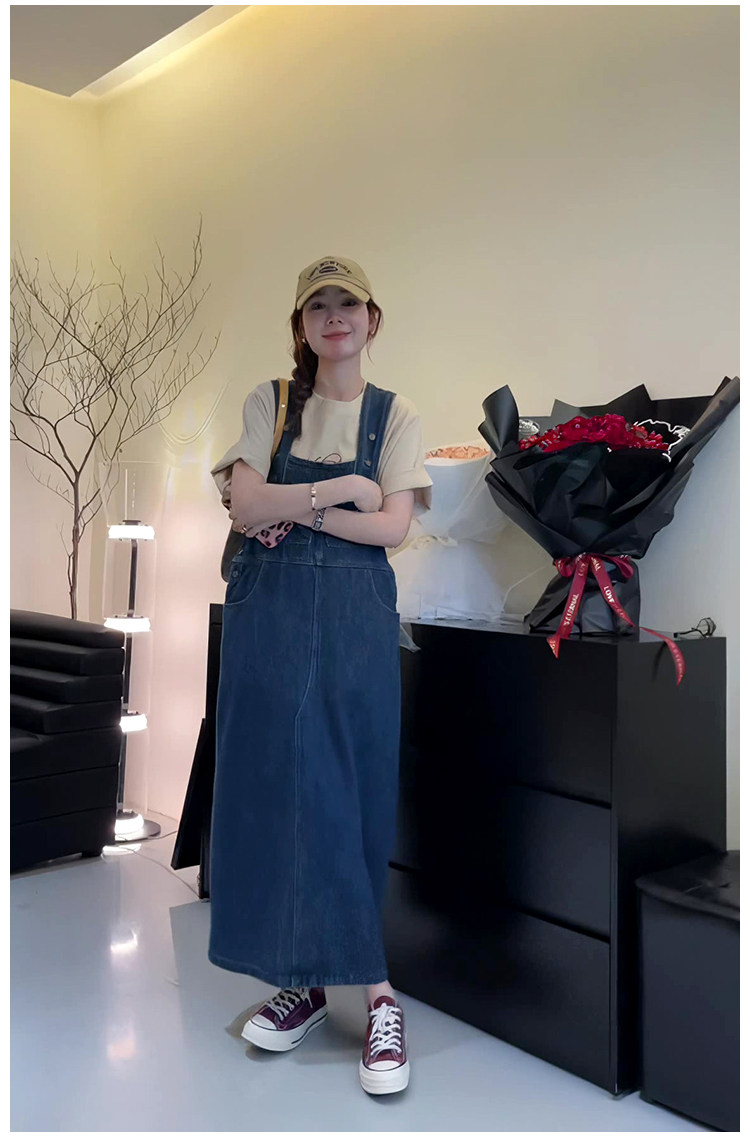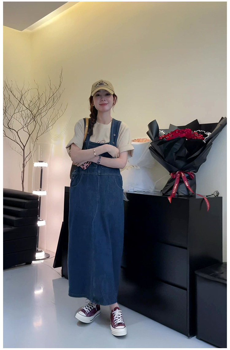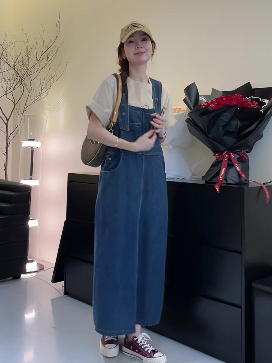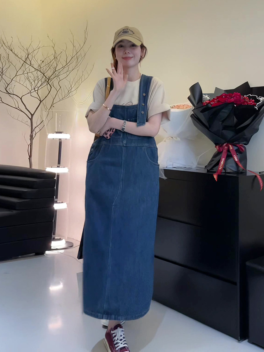Ретро джинсовый сарафан, весенняя юбка, дизайнерское длинное платье, в корейском стиле, тренд сезона, высокая талия