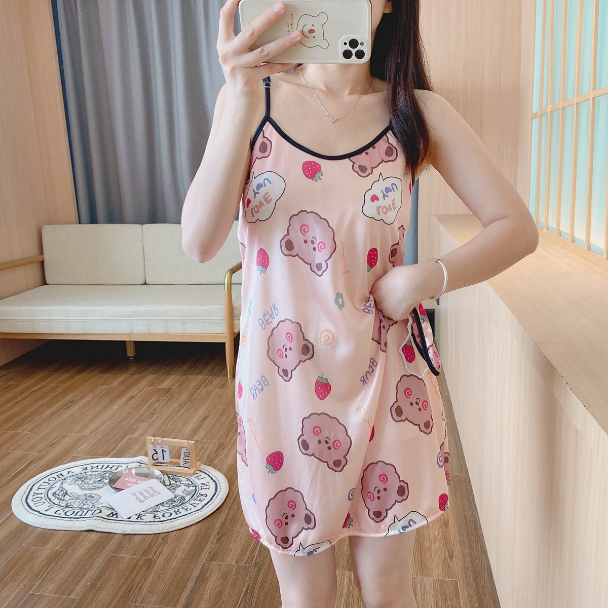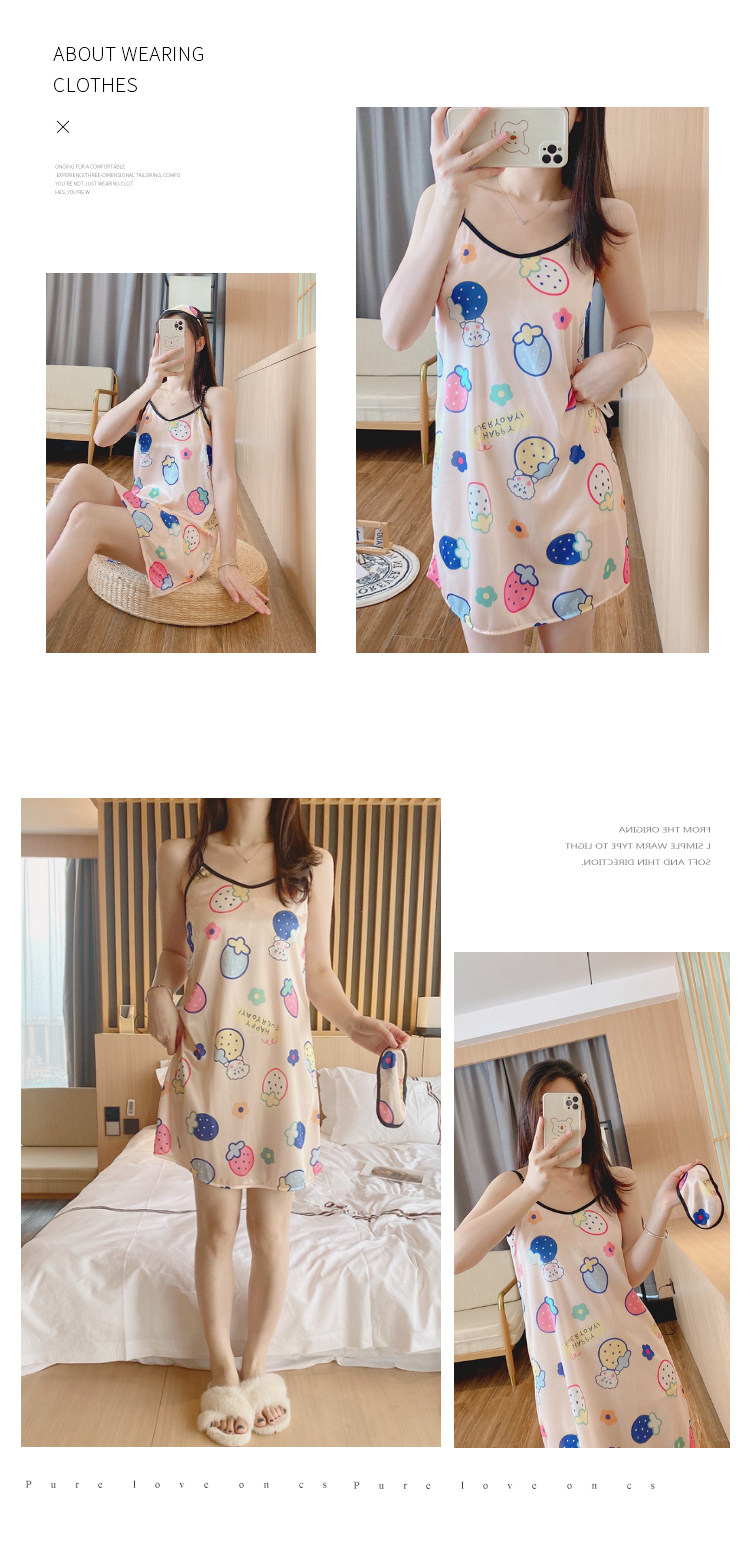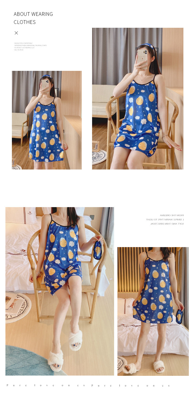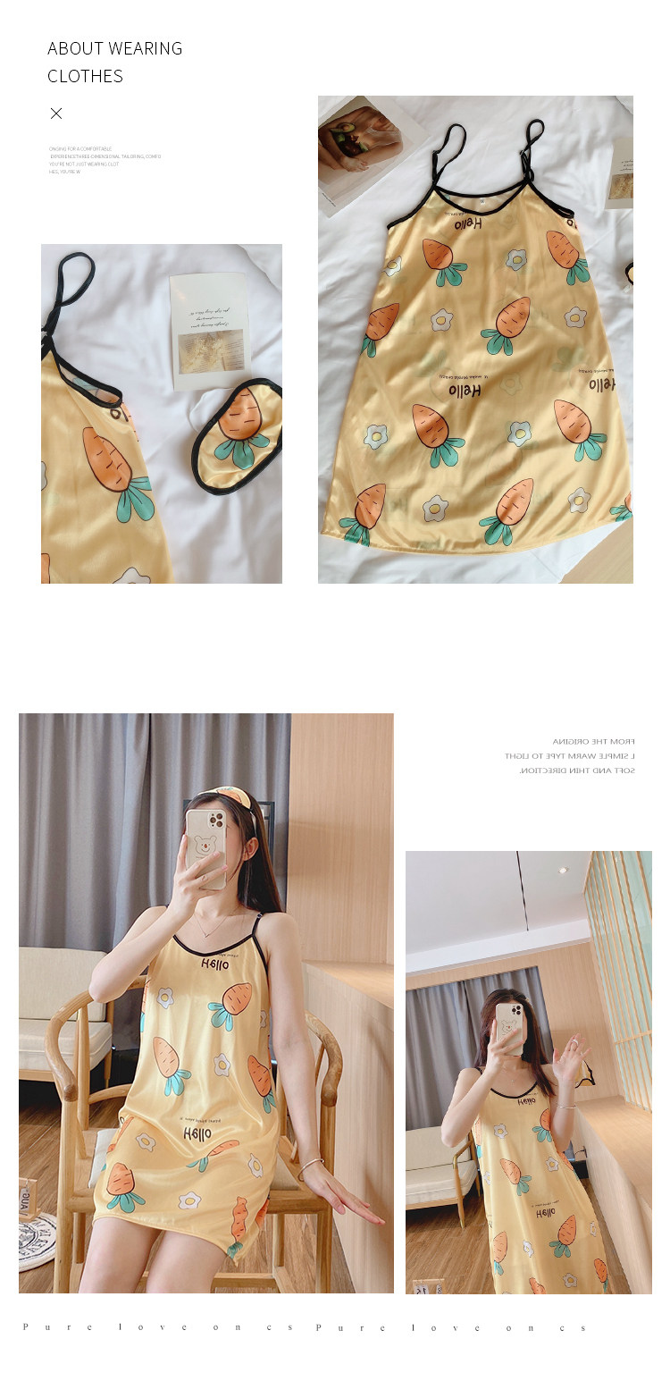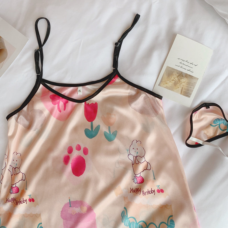 Летняя шелковая пижама, милая мультяшная юбка для школьников и студентов, эффект подтяжки