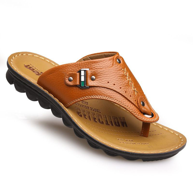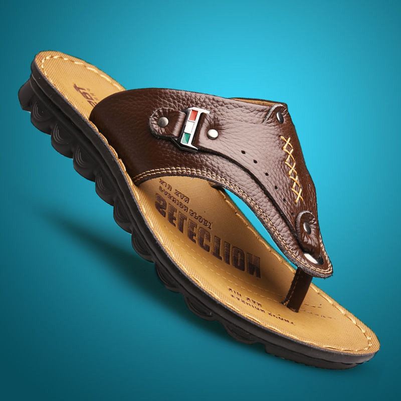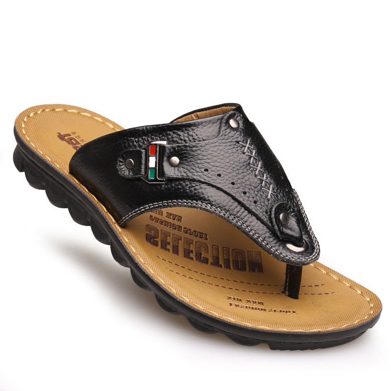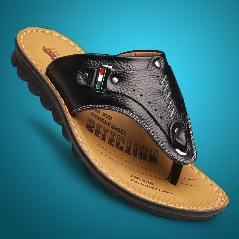 Кожаные летние сандалии, слайдеры, тапочки, пляжная обувь для отдыха, нескользящие сланцы, воловья кожа, из натуральной кожи