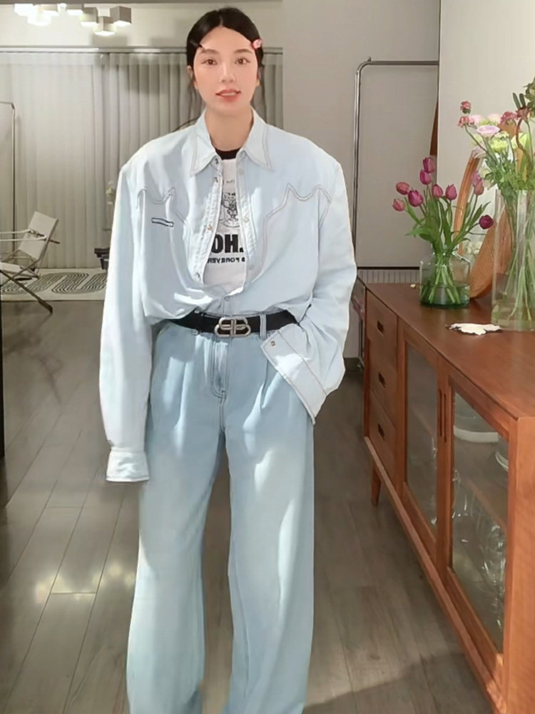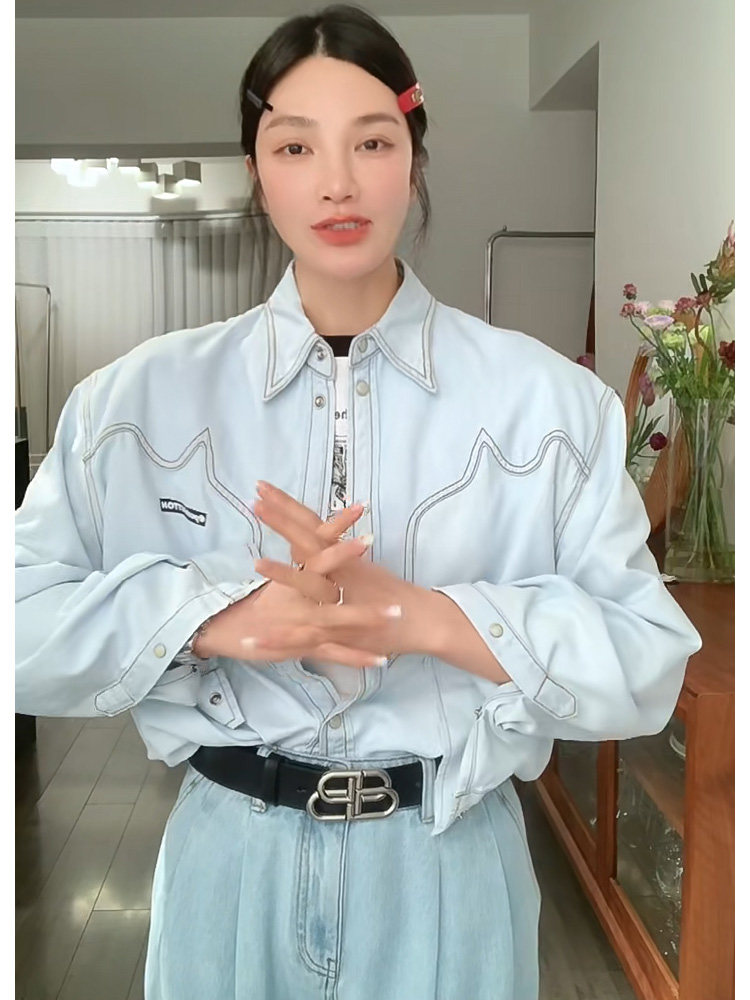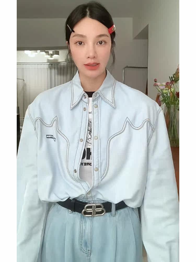 Дизайнерская синяя весенняя летняя рубашка, тренд сезона, 2023 года