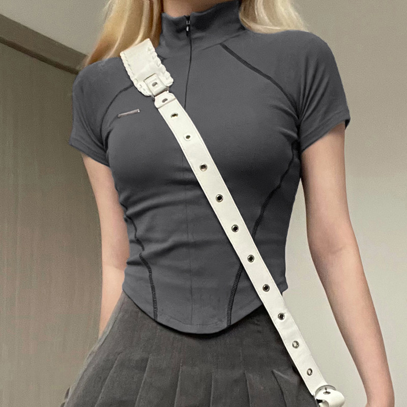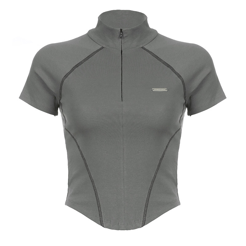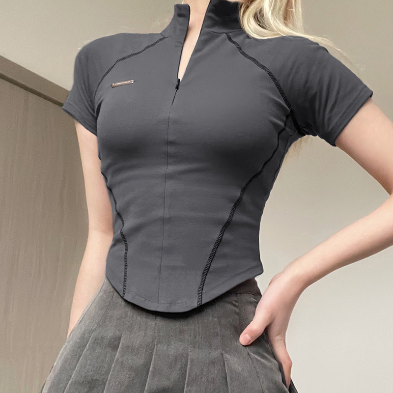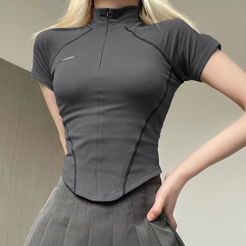 Дизайнерская невидимая приталенная базовая футболка с молнией