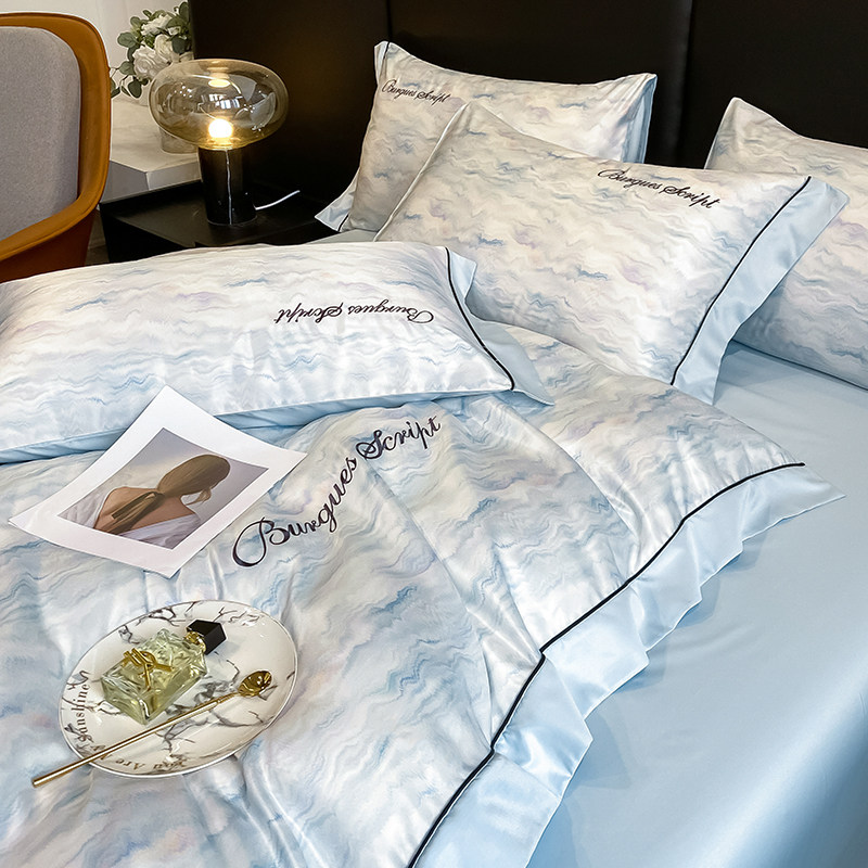 Летний шелковый комплект, простыня, пододеяльник, шелковистая шелковая кровать, легкий роскошный стиль, 4 предмета, изысканный стиль, постельные принадлежности