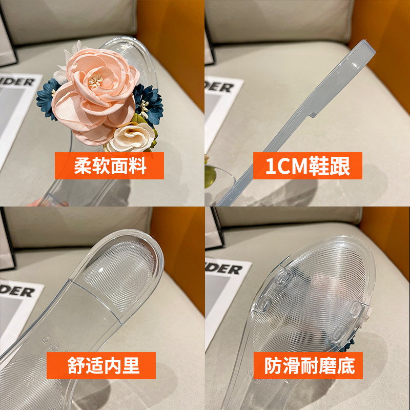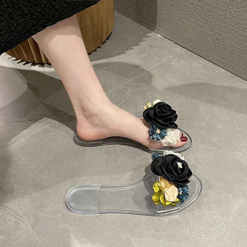 Xia Pingdi Fashion Wear Женская кристалл прозрачная студенческая желе, зажимающая нога, чтобы тащить на пляже холодные тапочки