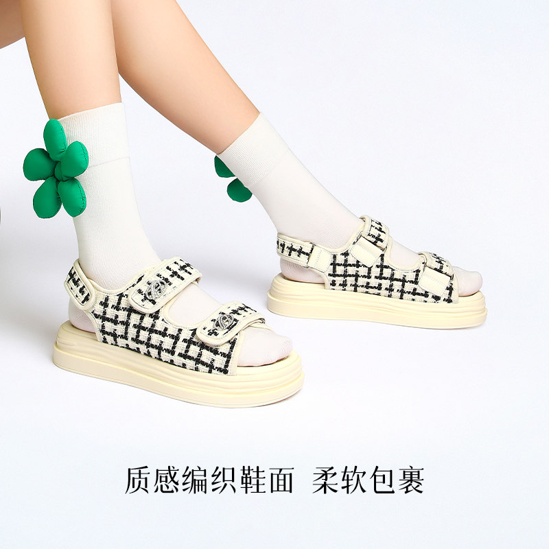 Сандалии для отдыха, универсальная модная летняя обувь на платформе, в стиле Шанель
