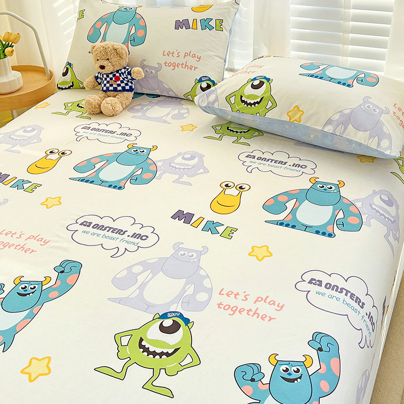Мультяшная хлопковая простыня, хлопковое покрывало, матрас, детские накладки, нескользящий комплект, 3 предмета